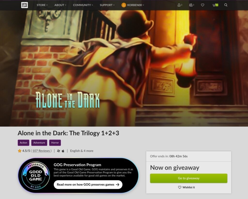 Hé les anciens, vous allez kiffer pusique GOG offre en ce moment la trilogie originale Alone in the Dark, complètement gratuite et à garder pour toujours. Oui, les 3 jeux qui ont posé les bases du survival horror bien avant que Resident Evil ne pointe le bout de son nez.