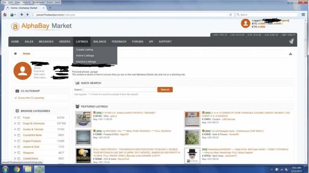 Interface d’AlphaBay en 2017