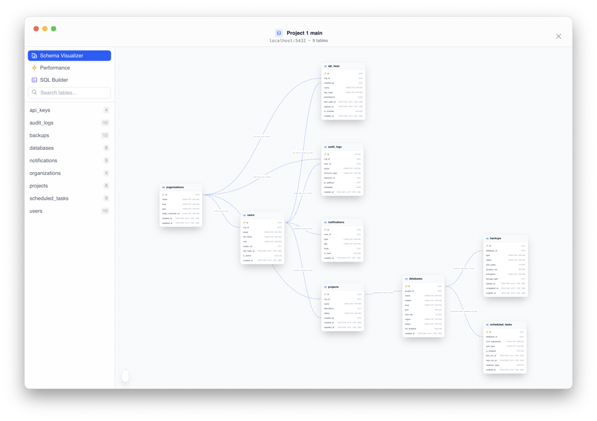 Le schema visualizer en mode ERD interactif, pratique pour décortiquer une base héritée