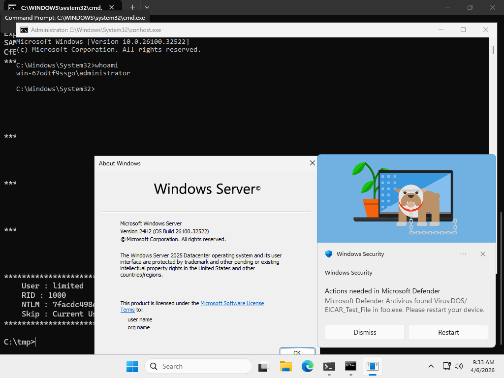 Notez quand même que le PoC original contient des bugs (le chercheur l’admet lui-même dans le README) et ne fonctionne pas sur Windows Server… ce qui ne veut pas dire que c’est inoffensif, attention. Et la réimplémentation de 0xjustBen, elle, n’a fonctionné que sur Windows 11 25H2, les versions 22H2, 23H2 et 24H2 n’étant pas affectées. Pas de CVE attribuée non plus pour l’instant, ce qui veut dire que Microsoft n’a même pas encore catalogué officiellement le problème.