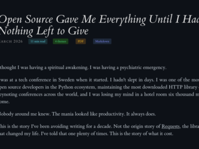 Le titre qu’il a choisi résume tout, je trouve : “Open Source Gave Me Everything Until I Had Nothing Left to Give.” En gros, le libre lui a tout apporté… jusqu’à ce qu’il n’ait plus rien à donner.