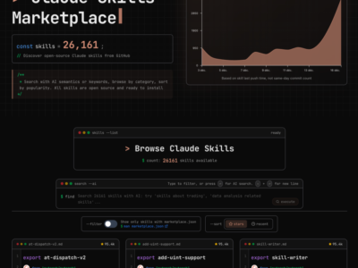 Vous utilisez Claude Code ? Alors vous savez probablement que l’outil d’Anthropic peut être étendu avec des “Skills“, c’est à dire des modules qui ajoutent des capacités supplémentaires à Claude. Y’a un fichier SKILL.md, des scripts optionnels, et comme ça, votre assistant sait faire de nouvelles choses. Sauf que pour trouver ces skills quand on n’a pas envie de se les palucher à la main (ou à l’IA), faut aller les chercher dans les repos GitHub, fouiller les README, comparer les étoiles… La flemme quoi…