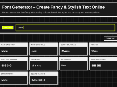 Si vous avez envie de pimper votre bio Instagram, votre pseudo Discord ou vos posts TikTok avec des caractères stylisés qui sortent de l’ordinaire, Font Generator va vous plaire ! C’est un outil gratuit en ligne qui convertit votre texte en 170+ styles différents basés sur Unicode, histoire de vous démarquer un peu dans la jungle des réseaux sociaux.