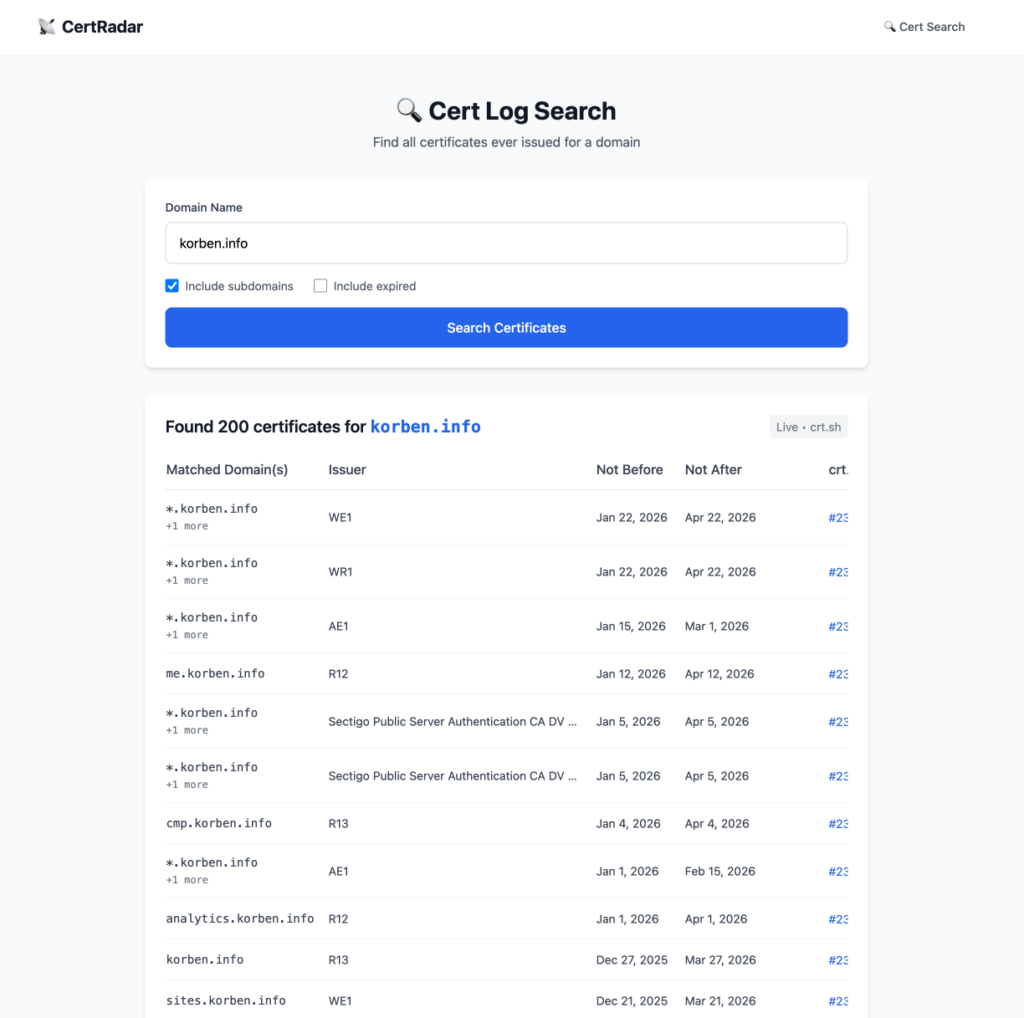 Perso j’adore ce genre d’outil pour le pentest et la veille concurrentielle. Vous tapez un domaine et bam, vous récupérez une bonne partie des sous-domaines qui ont eu un certificat SSL. Y’a de quoi faire pleurer un admin sys qui pensait que son serveur de dev était bien planqué !