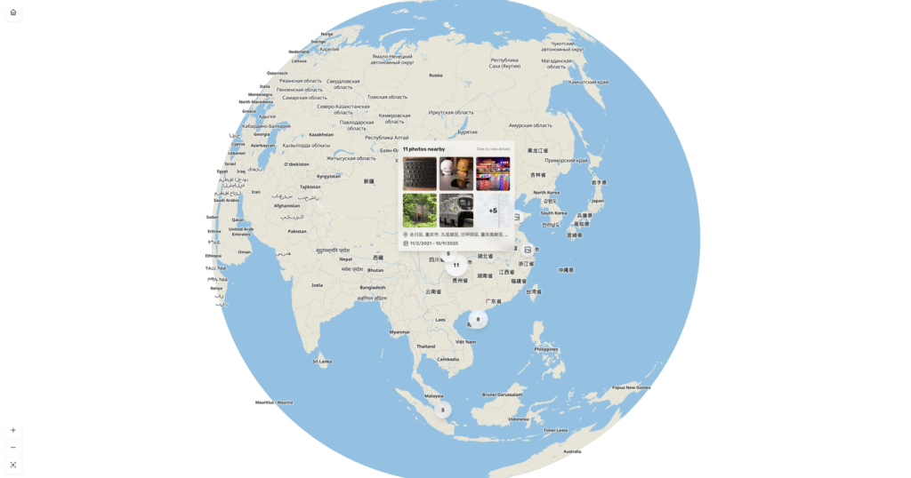 . C’est une galerie photo que vous pouvez héberger vous-même, qui va parser automatiquement toutes les données exif de vos clichés, extraire la géolocalisation, faire du reverse géocoding pour identifier le lieu exact et afficher tout ça sur une espèce de carte interactive sur laquelle vous pouvez naviguer pour revoir vos souvenirs de voyage.