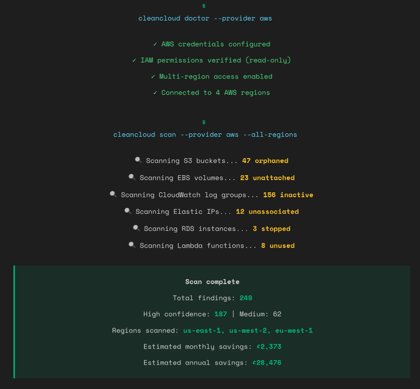 cleancloud scan --provider aws --all-regions