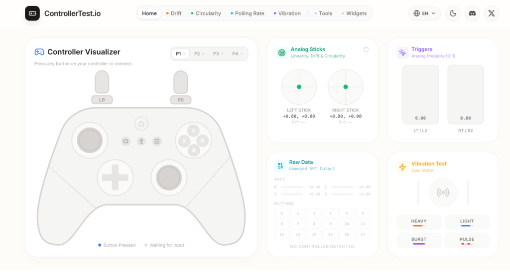 mais ControllerTest.io va clairement plus loin avec la détection de drift, le polling rate et les tests de vibration séparés par moteur, donc autant passer à celui-là.