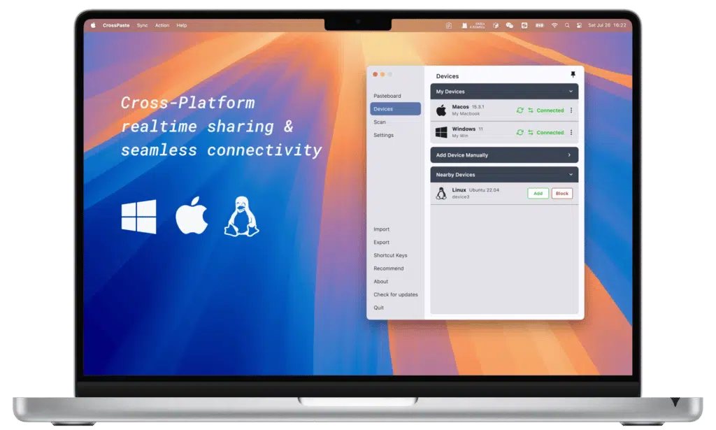 Vous installez l’app sur tous vos appareils (Windows, macOS, Linux) et hop, tout ce que vous copiez sur l’un se retrouve automatiquement disponible sur les autres. Du texte, des images, des URLs, du HTML, du RTF, des fichiers… Tout y passe. Et le truc cool c’est que ça fonctionne sur votre réseau local en mode “LAN-only serverless”, donc vos données ne transitent pas par un serveur central quelque part dans le cloud de Donald Duck, euh Trump.