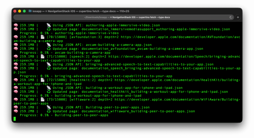Ainsi, au lieu de laisser Claude deviner les API (et se planter une fois sur deux), on lui file l’accès direct à la vraie doc. Les 261 frameworks Apple sont là, indexés dans une base SQLite locale, avec un moteur de recherche full-text qui répond en moins de 100ms. SwiftUI, UIKit, AppKit, Foundation, Core ML, ARKit… tout y est.