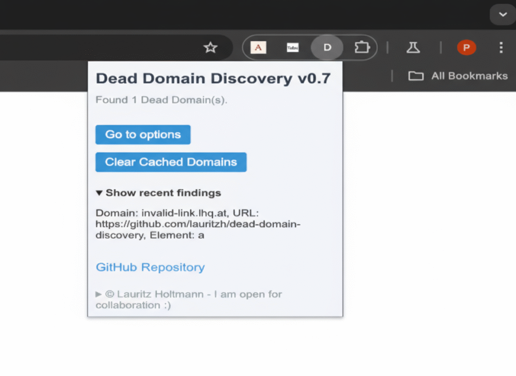 Vous naviguez sur le web en mode pépouze comme tous les jours… Et comme tous les jours, votre navigateur charge des scripts, des CSS, des cookies, des images, parfois des iframes. Et malheureusement, certains de ces trucs viennent de domaines qui n’existent plus. Vous ne vous en rendez pas compte et votre navigateur non plus. Mais Dead Domain Discovery DNS le sait, lui. Et il va vous le dire.