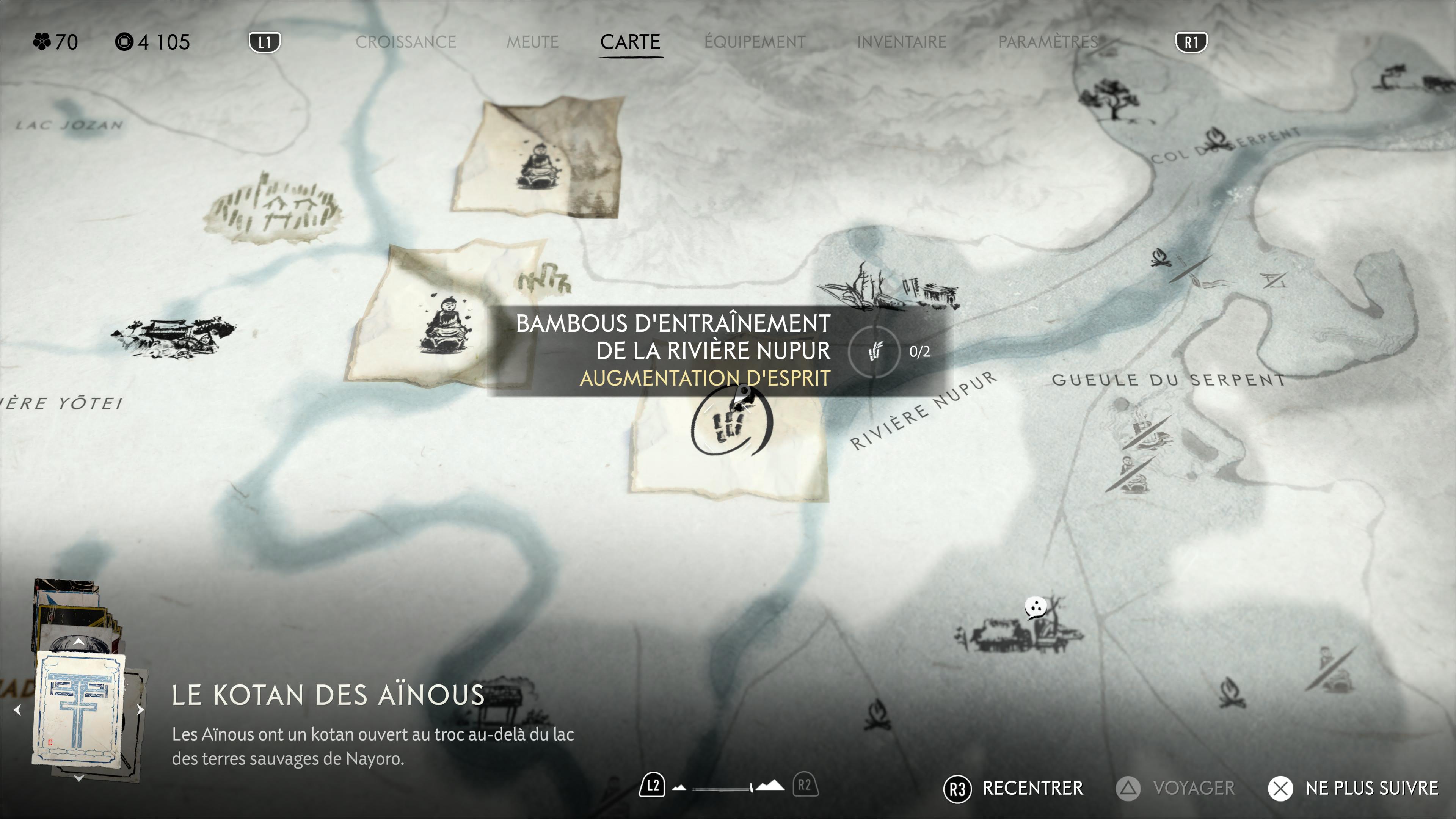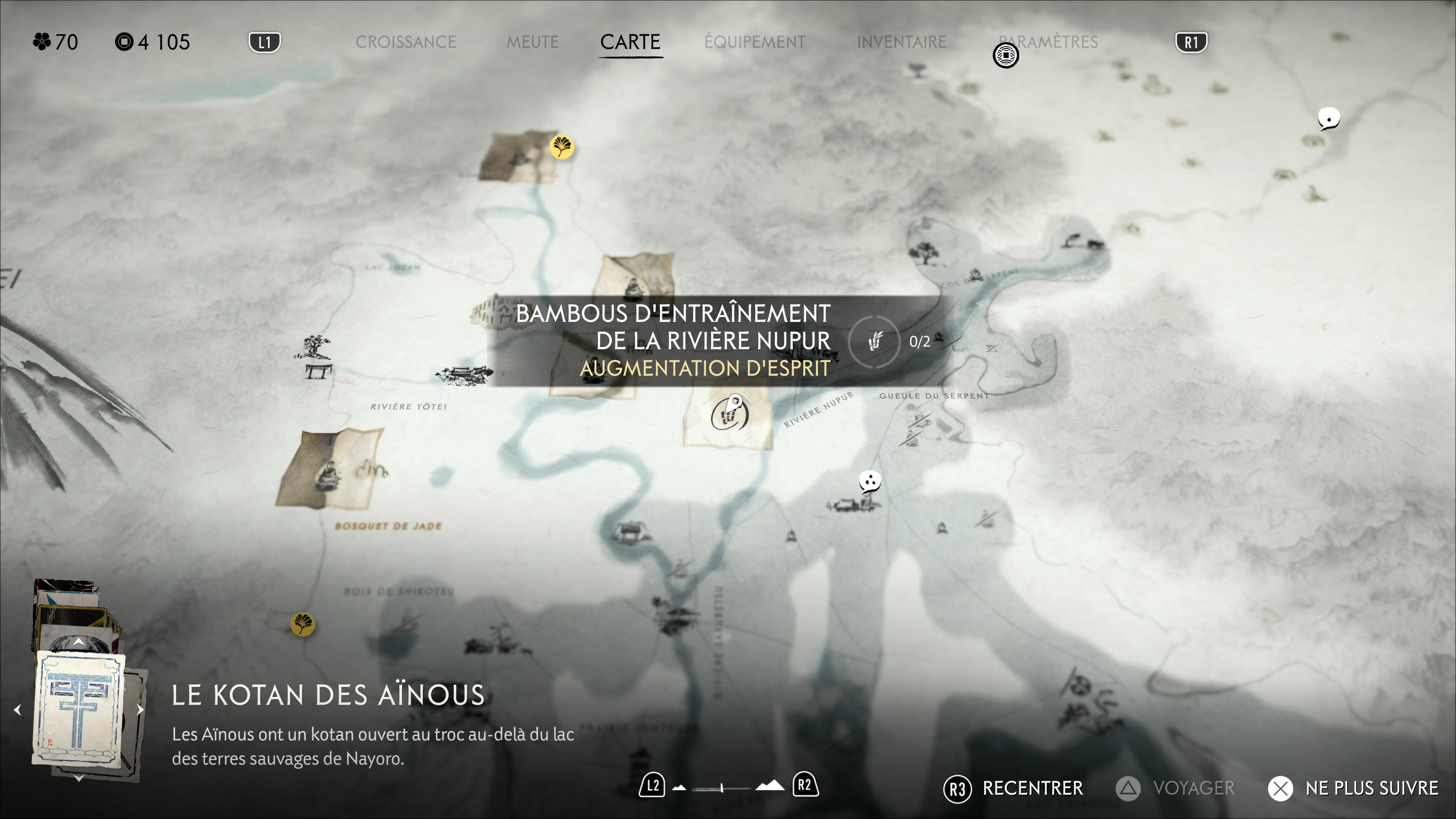 Un esprit sain dans un corps sain, c’est également un bon calcul dans Ghost of Yōtei. Pour augmenter la jauge d’esprit d’Atsu, très importante dans le gameplay combat, il est nécessaire de se rendre à des bambous d’entraînement et de participer à un mini-jeu de découpe. On vous liste ici l’emplacement de chaque terrain d’entraînement.