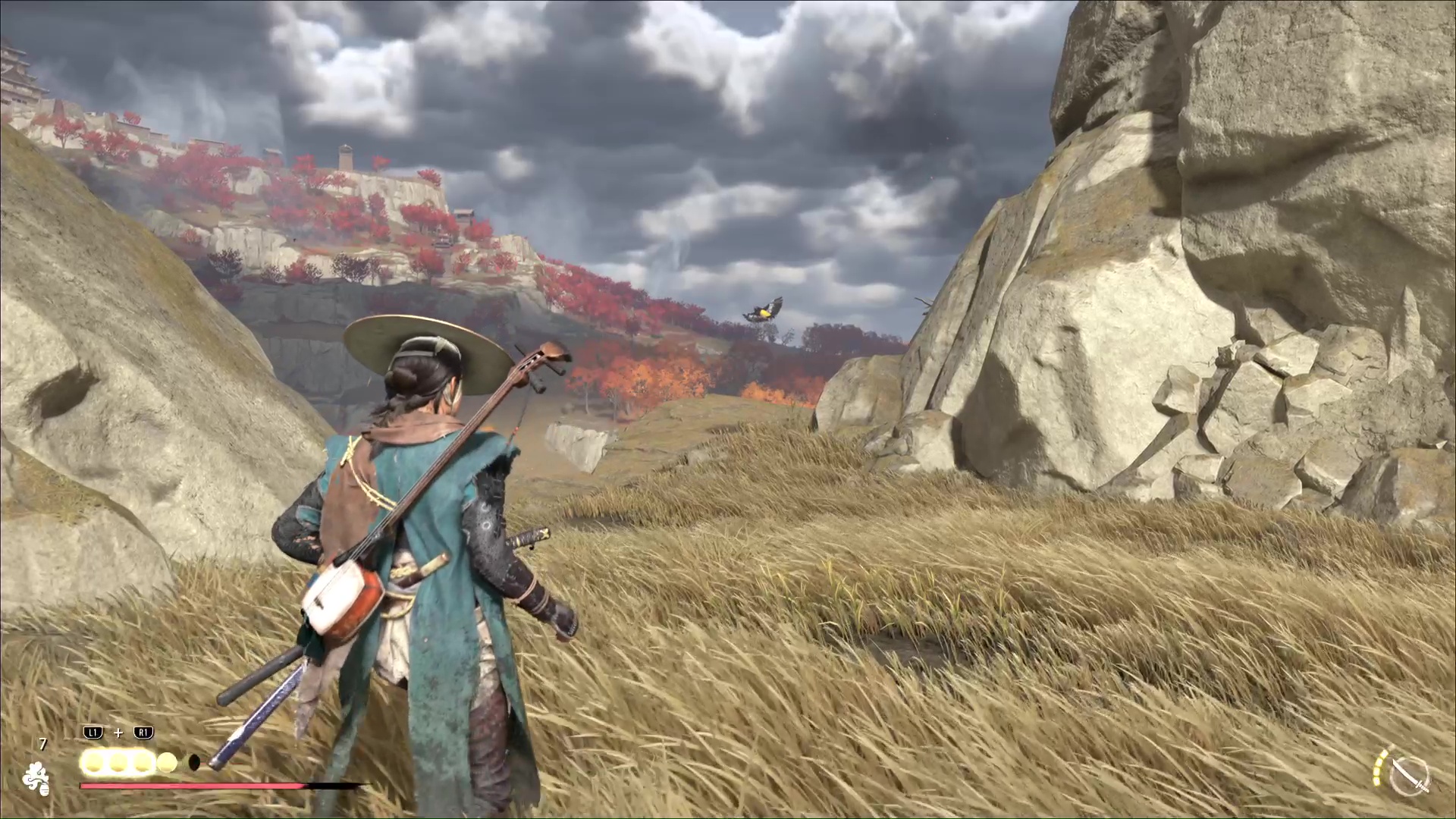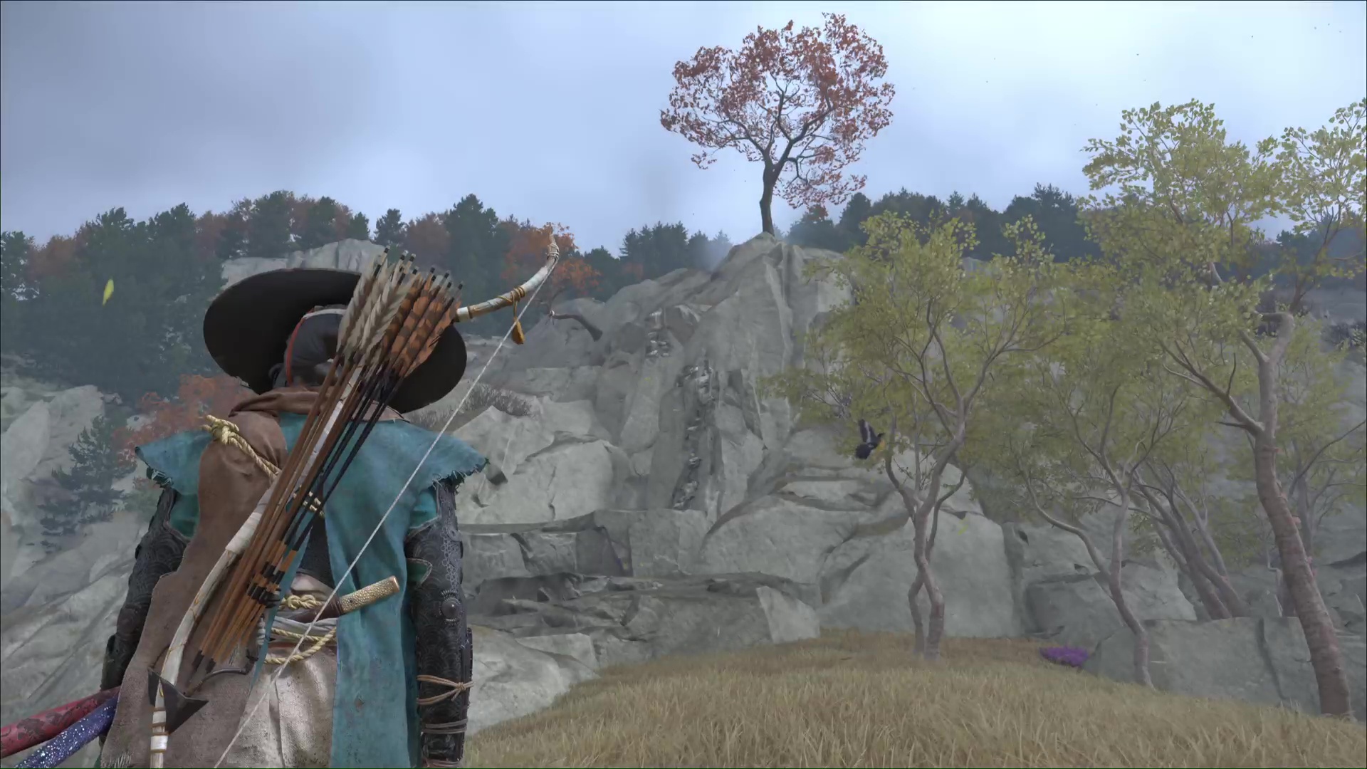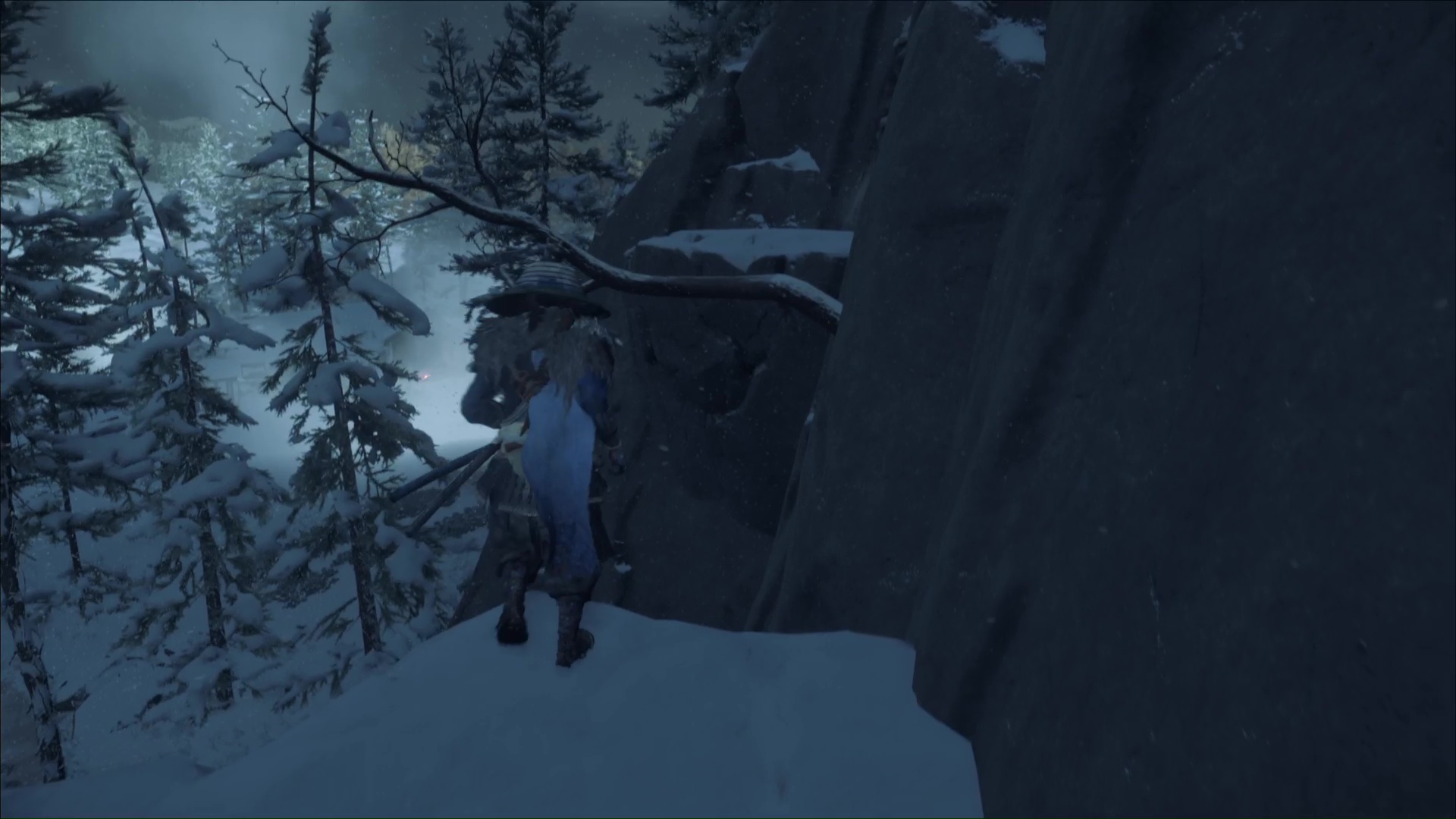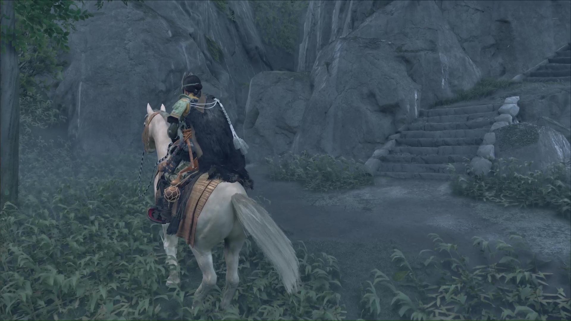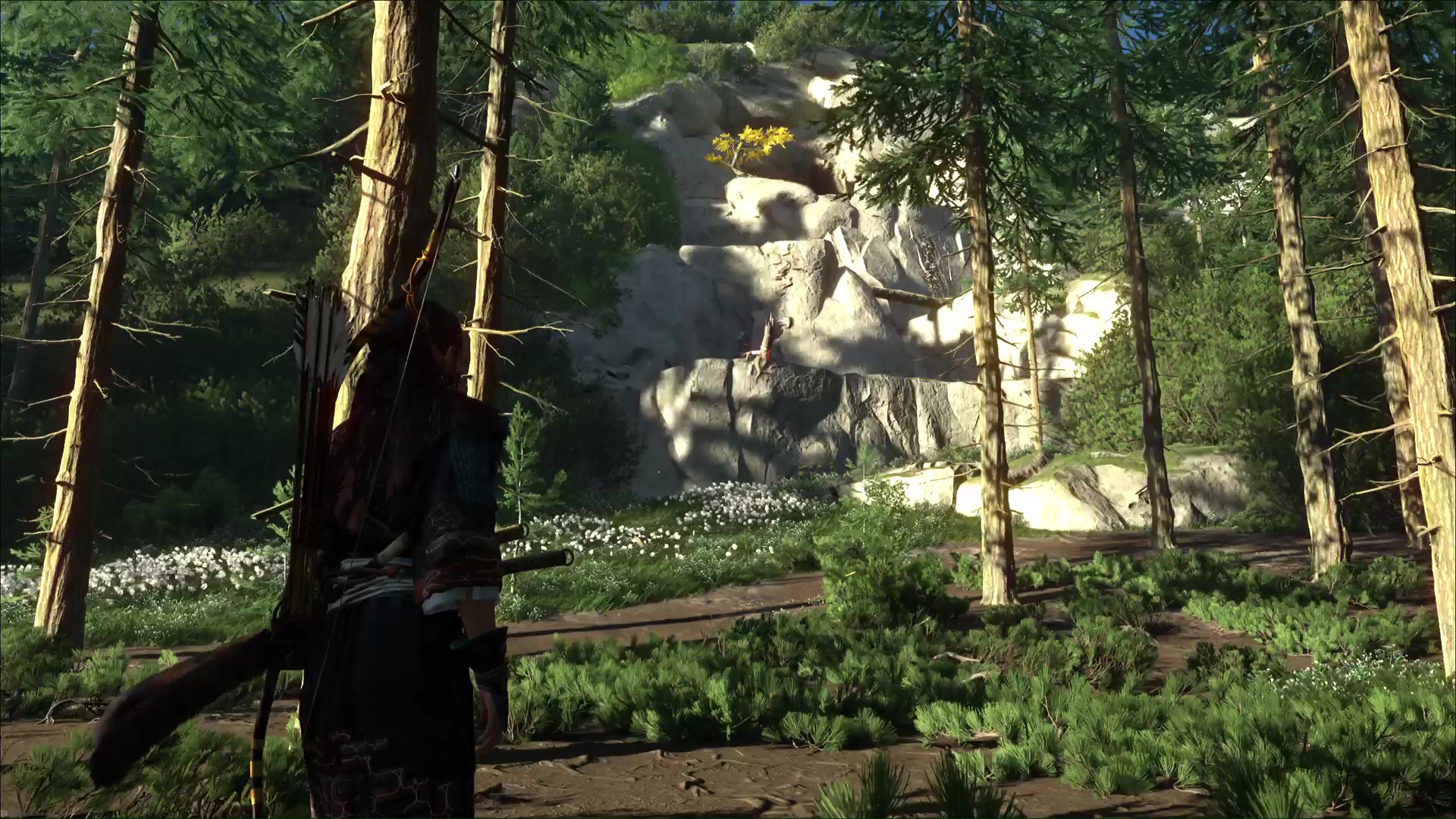 À l’extrémité nord des Prairies de Yōtei se trouve la zone des Contreforts dorés. Lorsque l’on fait face à la grande cascade, remarquez les prises rocheuses sur la gauche.