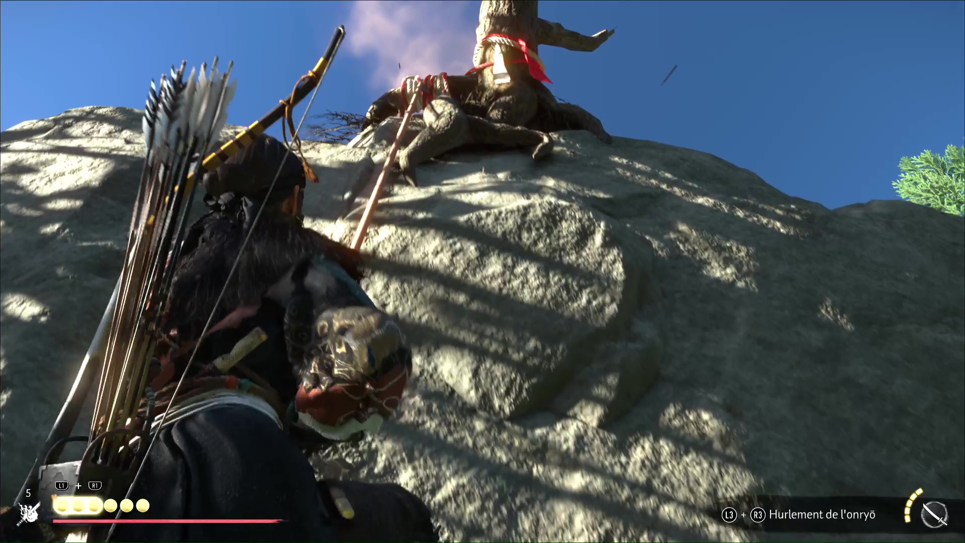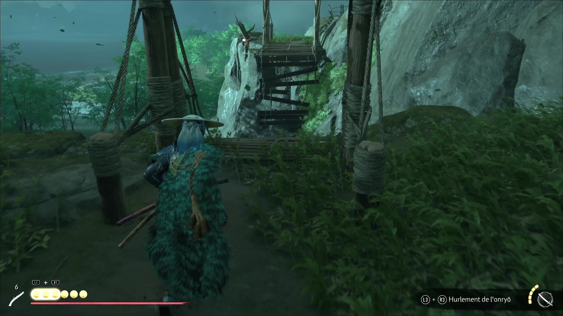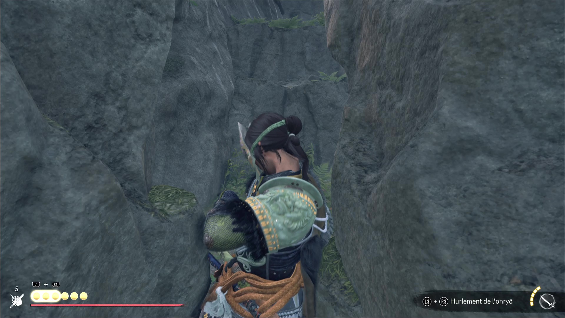 Une fois hissé un peu plus haut, vous aurez à sauter deux fois au grappin, successivement, afin d’atterrir sur de nouvelles prises rocheuses. De nouveau en mode grimpette, allez vers le haut pour vous rapprocher d’une souche et vous y accrocher. En haut, vous serez enfin au niveau de la source.