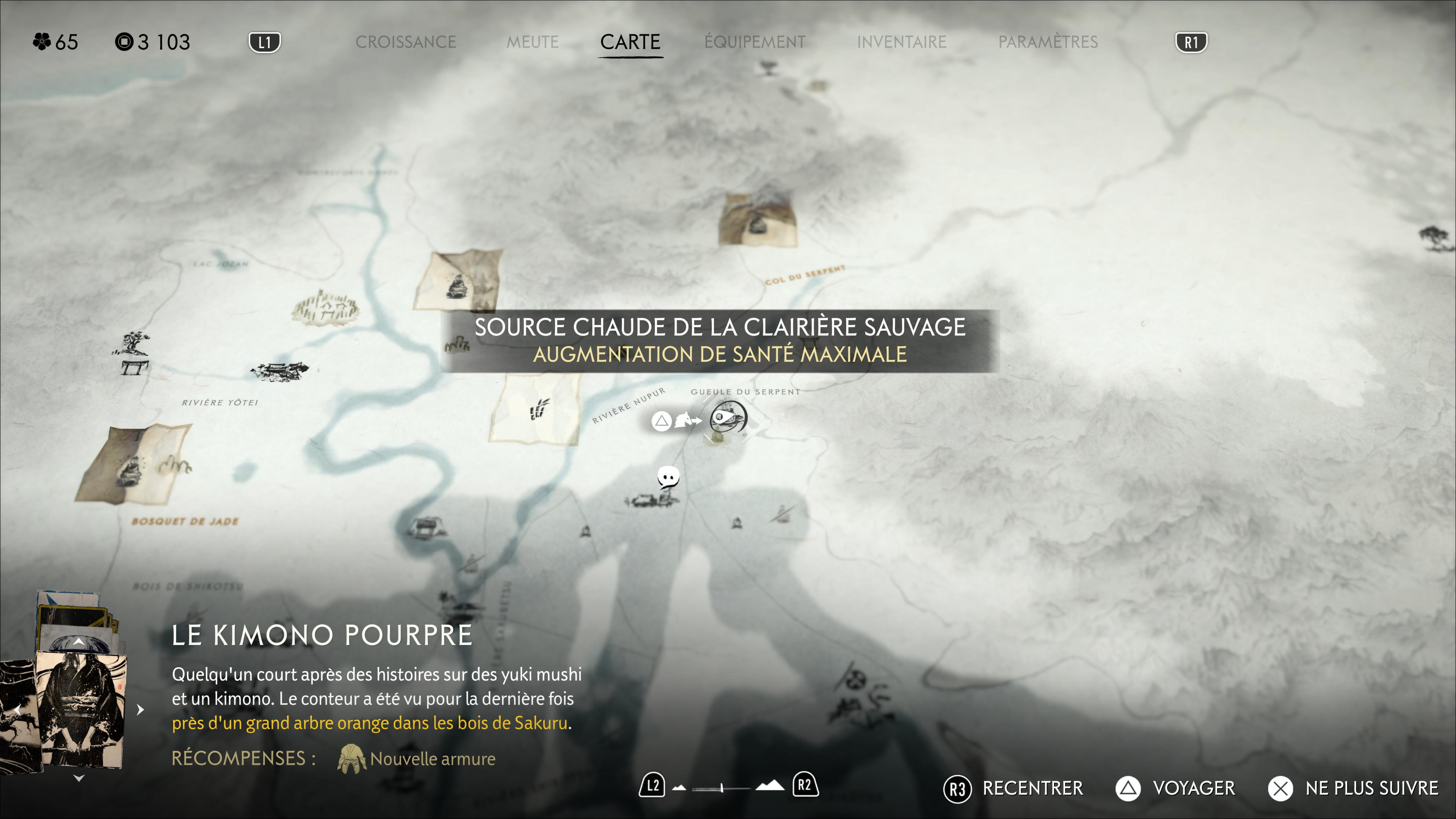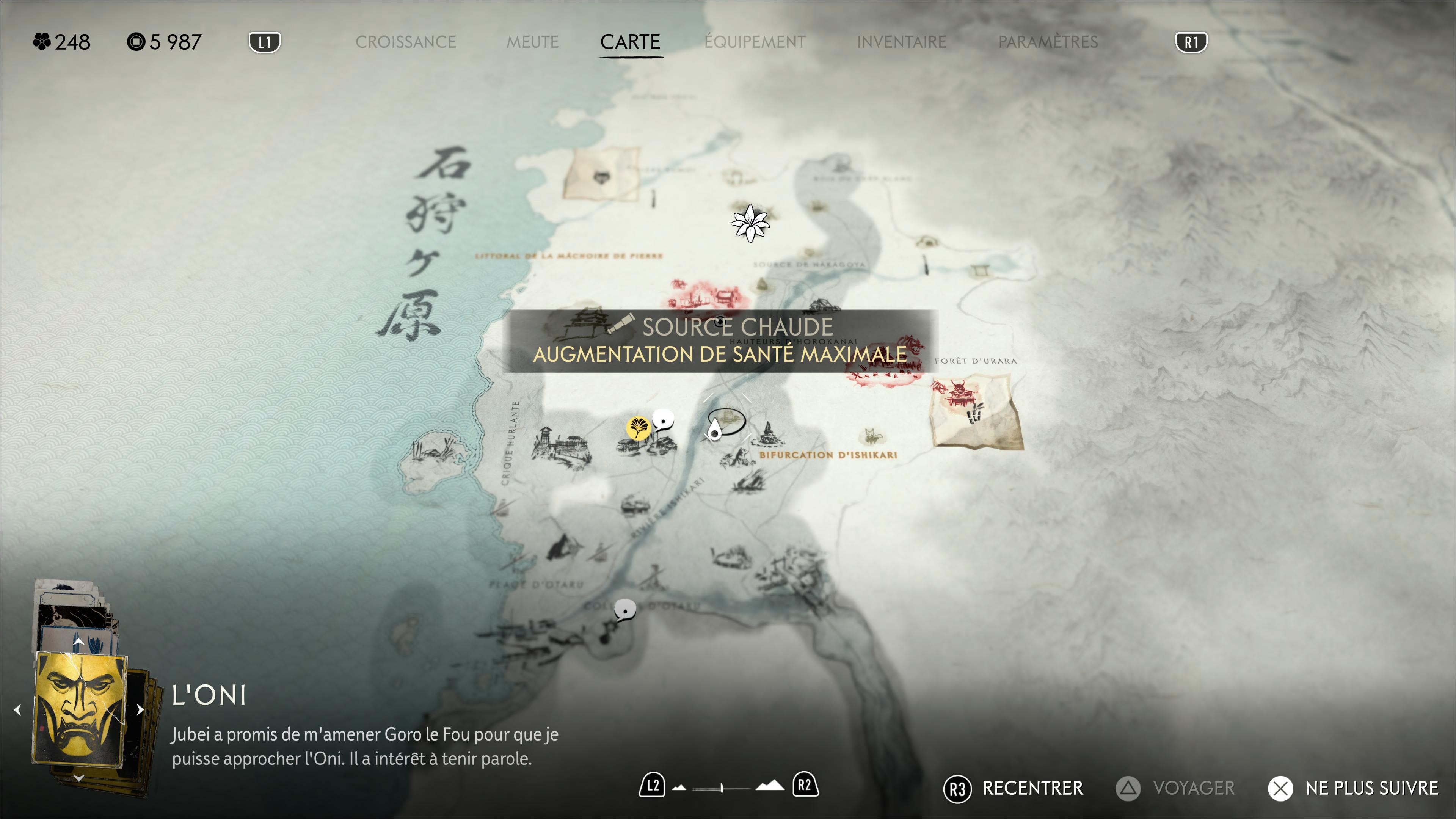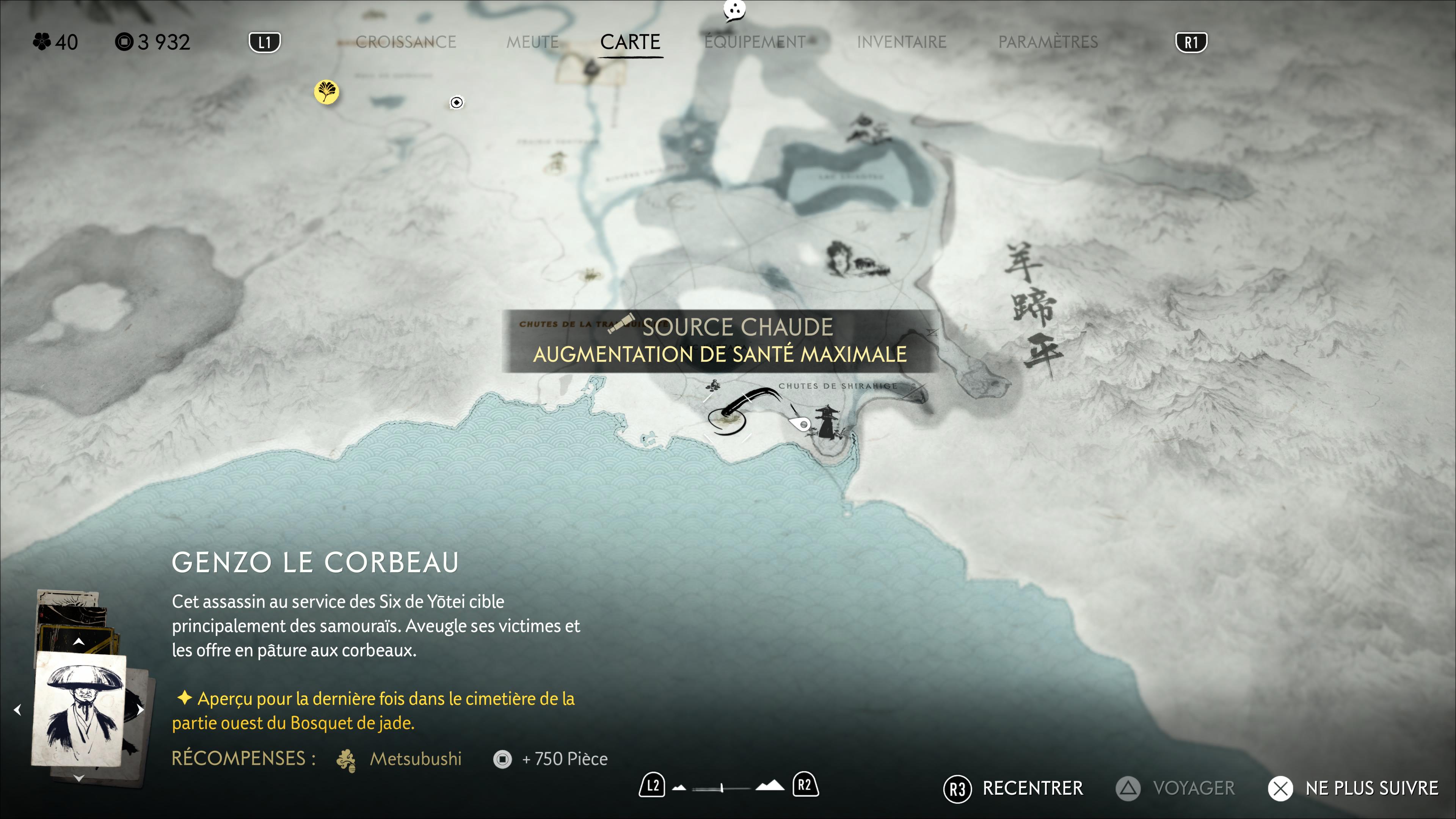 Se ressourcer dans un onsen est une pratique populaire et reconnue encore aujourd’hui. Dans Ghost of Yōtei, les bienfaits d’un bain thermal se traduisent par l’augmentation de la santé maximale pour chaque premier bain effectué. Vous avez donc tout intérêt à y faire trempette dès que possible.