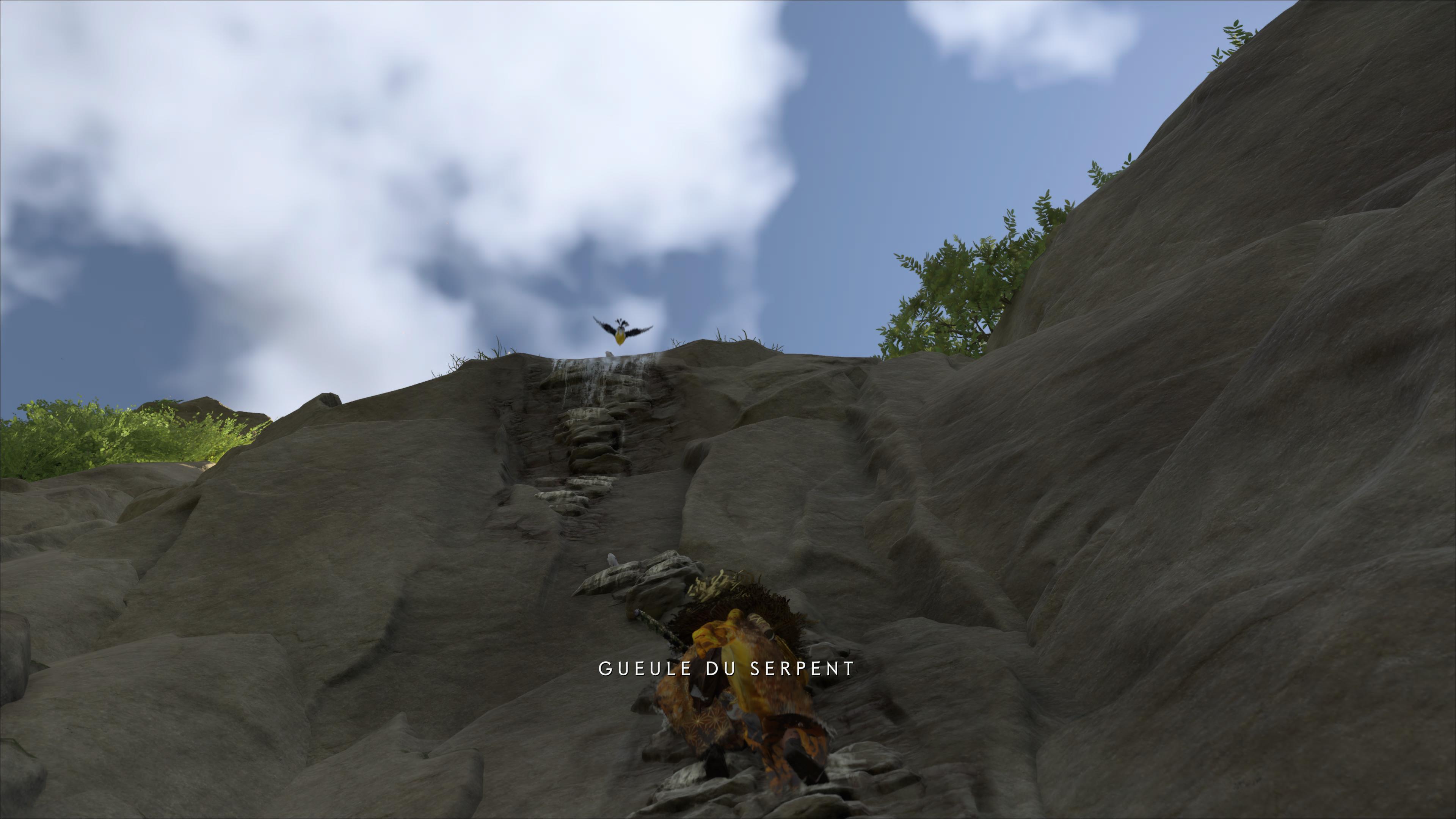 Approchez donc par le sud afin de vous retrouver au pied du rocher au sommet duquel se trouve la source, et commencez à grimper par les prises rocheuses. Ensuite, hissez-vous à la souche grâce à votre grappin et franchissez les quelques marches restantes pour rejoindre la source.