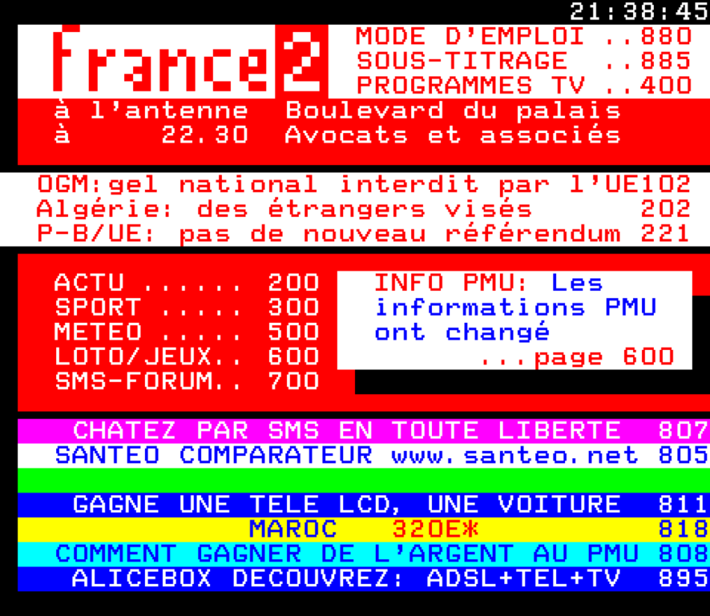 Et la télé, c’était pas juste “j’allume et je regarde”. Fallait parfois négocier avec l’antenne râteau, et la “neige” à l’écran faisait partie de la déco. Et puis y’avait le câble Péritel, ce gros connecteur qui vous donnait l’impression de brancher une centrale nucléaire derrière la télé. Sans oublier le télétexte, le truc le plus moche du monde, mais où vous pouviez voir les infos, la météo, et les résultats sportifs en mode pixels de l’enfer. C’était lent, c’était laid… mais c’était déjà un mini-Internet pour les pauvres que nous étions.