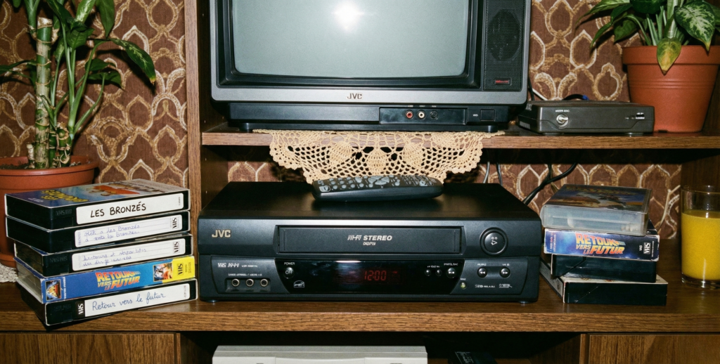On avait le magnétoscope aussi, format VHS de JVC lancé au Japon en 1976 et arrivé en France dès 1978 (le Betamax de Sony a jeté l’éponge fin des années 80). Et le luxe ultime c’était de pouvoir enregistrer un programme pendant qu’on en regardait un autre. Ou programmer l’enregistrement d’un film qui passait à 2h du mat’. Toutefois, la programmation du magnétoscope était si compliquée que la plupart des cassettes enregistrées contenaient soit du noir, soit la fin d’un autre programme. Personne ne maîtrisait vraiment la bête… ^^