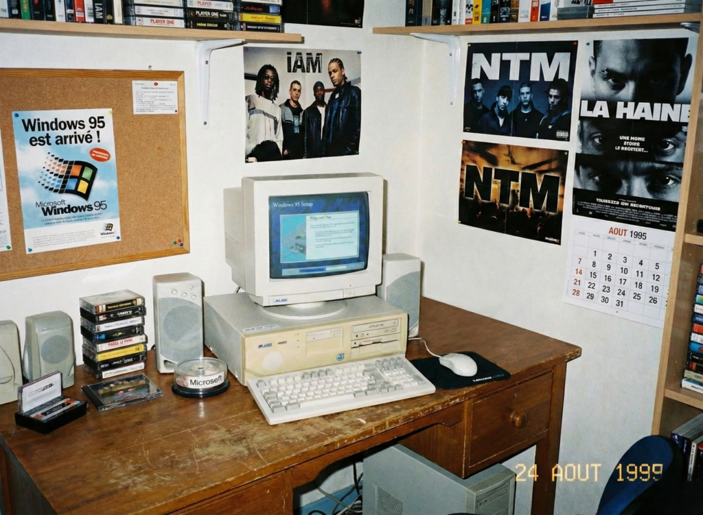 Et puis y’avait LE truc qui vous mettait instantanément dans la catégorie “famille de riches” ou “famille bizarre” et c’était l’ordinateur à la maison. Un vrai hein. Une machine qui prenait la moitié d’un bureau, qui chauffait comme un radiateur et qui faisait un bruit de vaisseau spatial quand elle démarrait. Et encore, “avoir un ordi” ça voulait tout et rien dire car certains avaient un truc pour jouer, d’autres un truc “pour travailler”, et dans tous les cas… personne n’avait la moindre idée de ce qu’il faisait vraiment. Mais c’était magique !