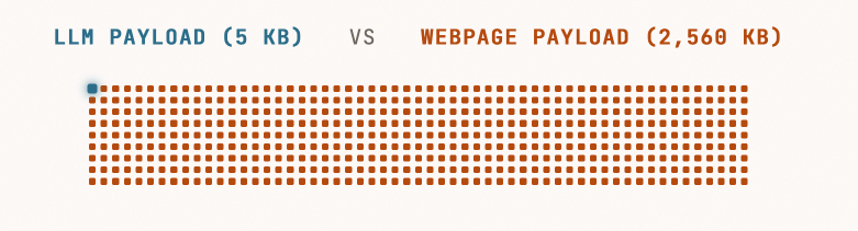 D’abord, la page web médiane sur mobile pèse 2,56 Mo. Oui, 2,56 Mo pour une seule page web sur Chrome ou Safari qui est ensuite transmise en 4G à 0,17 kWh/Go, et ça, ça coûte déjà plus en énergie réseau qu’une inférence LLM complète. Une réponse ChatGPT ou Claude, c’est environ 5 Ko de texte brut. Le ratio de transmission est de 500 pour 1 avant même de parler du reste. Quand on sait déjà que la