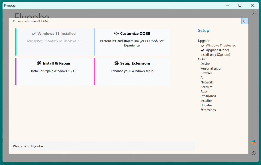 Si vous choisissez l’upgrade, FlyOOBE téléchargera automatiquement l’ISO de Windows 11, appliquera les patchs, et lancera le processus. Comptez alors environ 30 minutes à 1 heure selon votre machine et votre connexion internet. Rassurez-vous, l’outil gardera vos fichiers et tous vos programmes car c’est une vraie mise à niveau, et pas une réinstallation. L’Autopilot intégré a d’ailleurs été amélioré pour vous guider de manière encore plus autonome pendant l’installation.