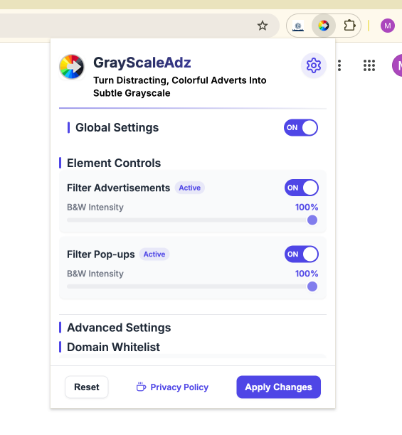 c’est donc une extension Chrome qui ne bloque rien, mais convertit les publicités en noir et blanc. Comme ça, vous gardez la pub et les journalistes et autres webmasters des sites peuvent garder leurs revenus, continuer à aller au ski et se payer des Uber Eats sans se la coller derrière un paywall tout nul. Et vous, ça vous agresse moins !