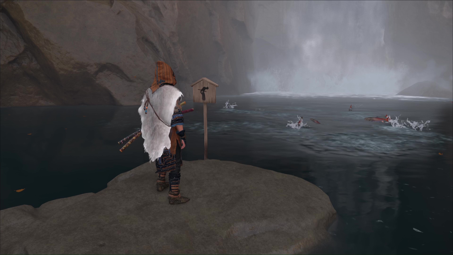 Rendez-vous au Sanctuaire du repos ambré, dans le coin ouest des Monts Tokachi. Au lieu de mener l’ascension qui mène jusqu’au sommet, dirigez-vous vers l’immense cascade. Presque au pied de cette cascade, dans l’eau, un panneau de lieu spécial est planté au bout d’un rocher. Interagir avec fera apparaître plein de poissons.