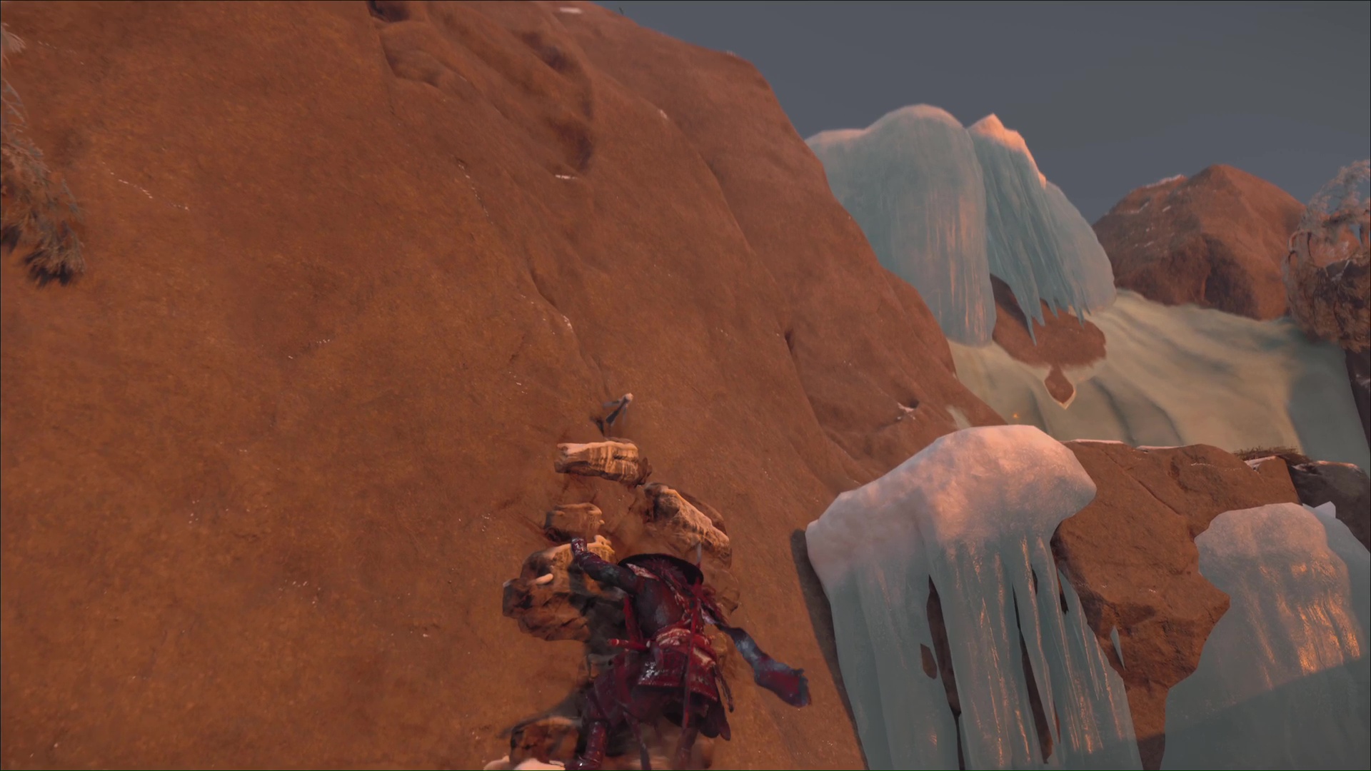 Allez près du grand foyer pour vous réchauffer, puis allez voir les deux statues tout près. Tournez le regard de la statue de gauche vers la droite, et le regard de la statue de droite vers la gauche. Vous libérerez ainsi une corde vous permettant d’aller en face. Montez ensuite quelques parois rocheuses et hissez-vous.