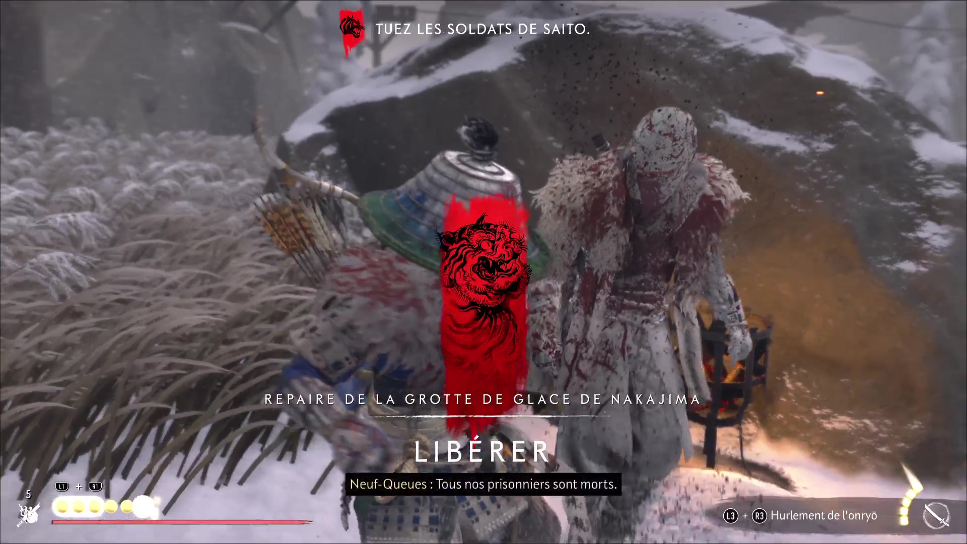 Outre les ennemis à tuer, vous aurez aussi à illuminer des lanternes de renard pour progresser. Dans la première et la deuxième partie du camp, la torche et la lanterne à allumer se trouveront à gauche du pont brisé, lorsque vous lui faites face.