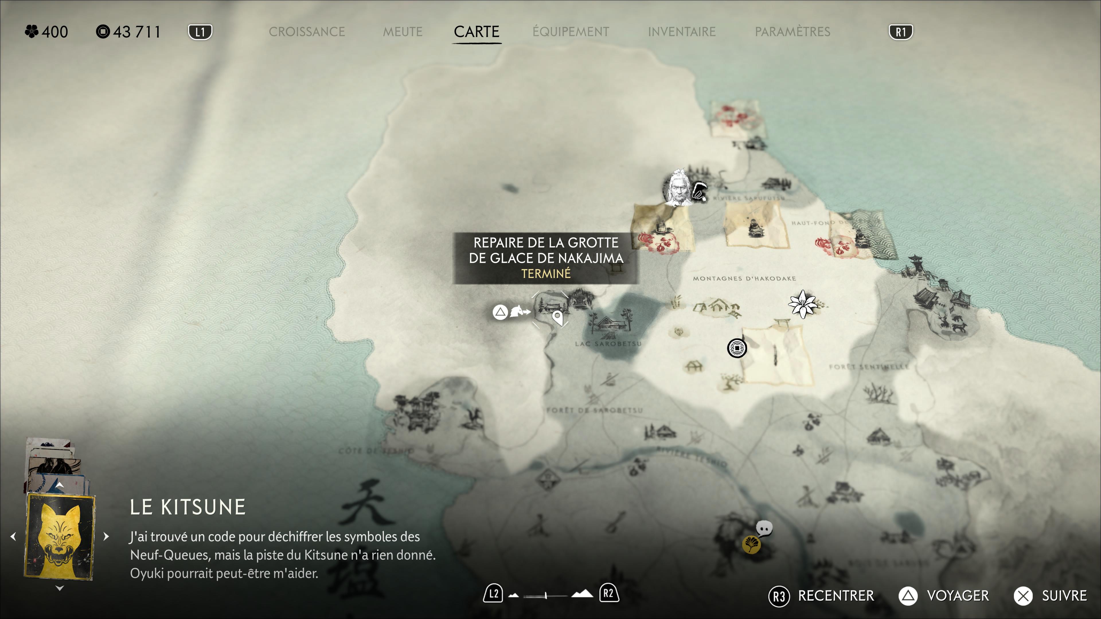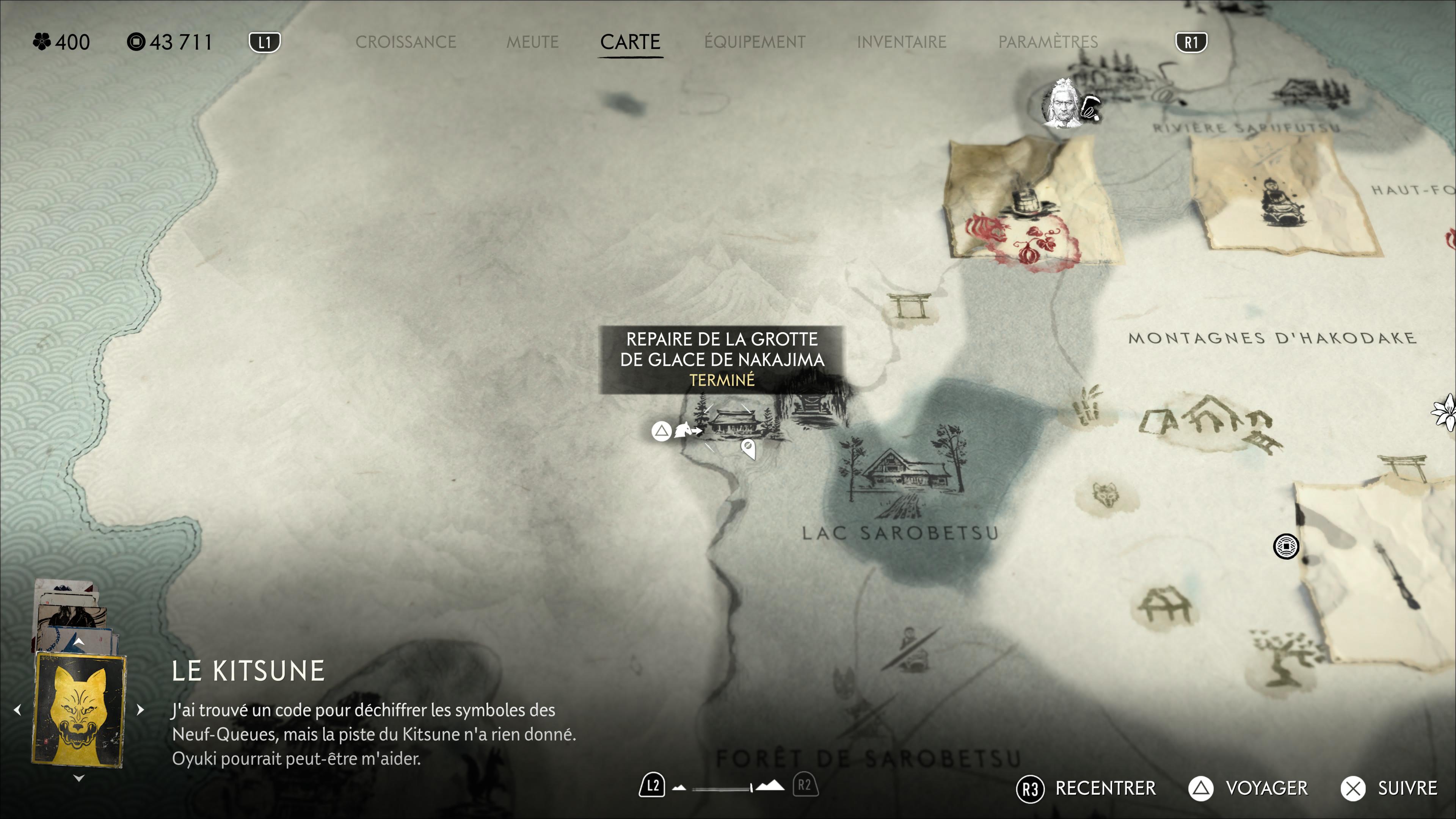 Ouvrez votre carte vers l’ouest de la région pour apercevoir la zone Forêt de Sarobetsu. Dirigez-vous pile au centre de l’inscription de la zone sur la map pour tomber sur l’Autel du Kitsune sur lequel est posée la boîte.