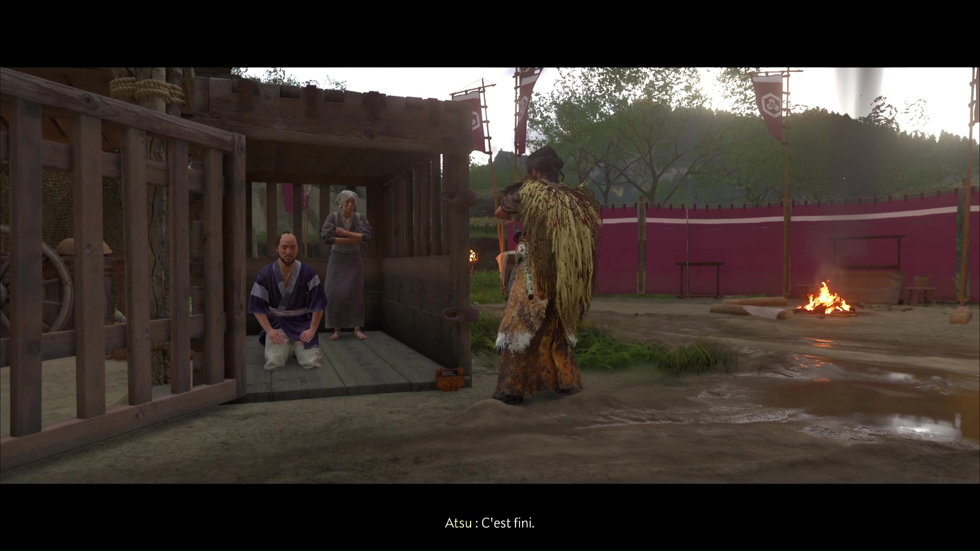 Pour atteindre Muneji, il faut rejoindre le cœur du camp. Pour ce faire, il faut passer dans une ouverture au milieu des barrières en bois. Ensuite, il faut gagner le duel contre Muneji