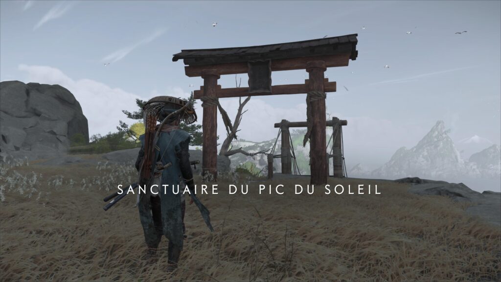 De l’autre côté, vous profitez d’une vue superbe et bien mérité : le sommet du Mont Yōtei. Tout n’est pourtant pas terminé. Passez sous un nouveau torii et poursuivez jusqu’à glisser une pente. Un peu plus loin, plusieurs plateformes sur lesquelles sauter en veillant à ne pas tomber sur la pente glissante suivante.