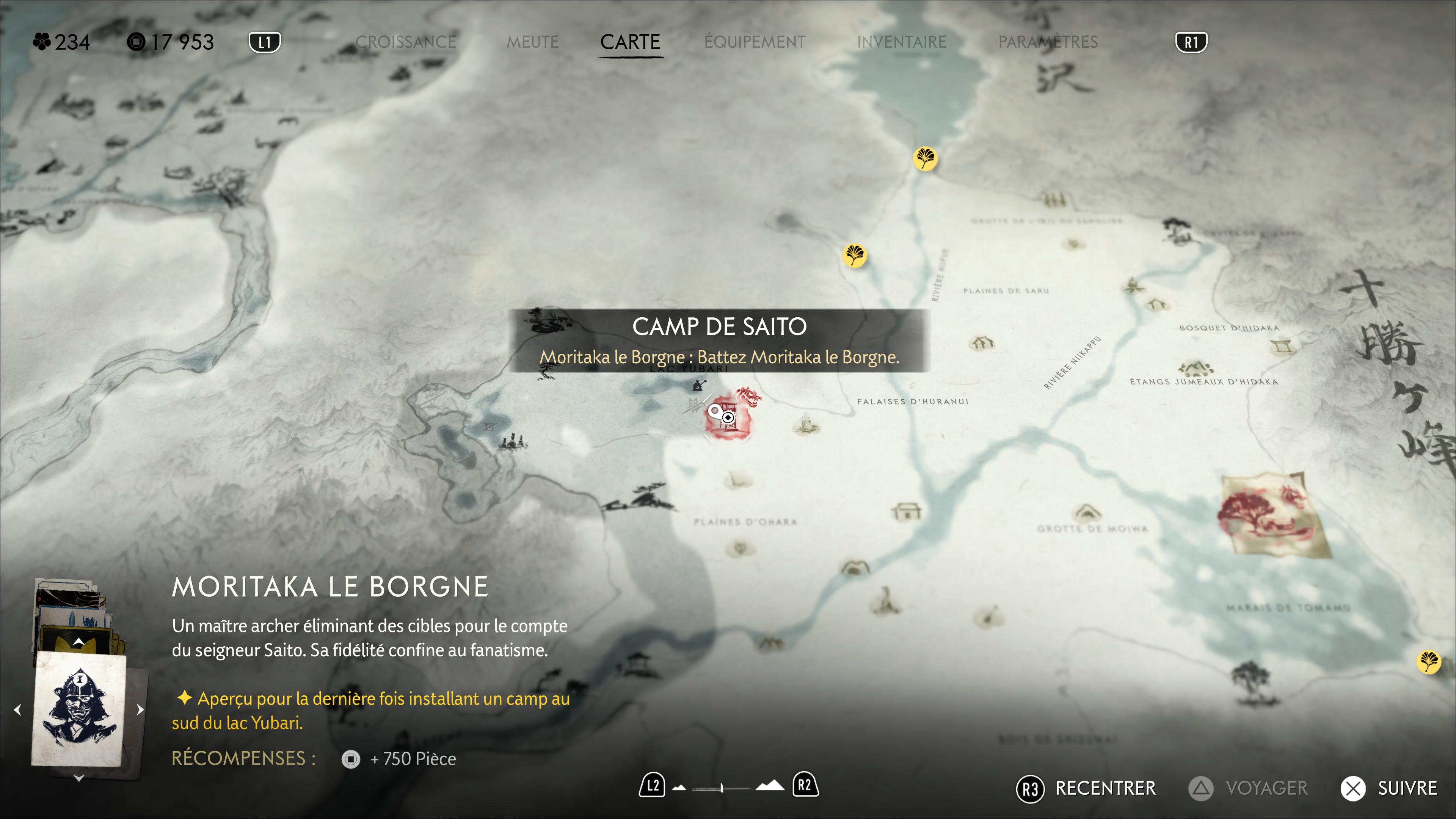 Un borgne, une buveuse de thé pas comme les autres ou encore un homme qui ne travaille pas tout à fait seul, tels sont les quelques profils dangereux que vous pourrez traquer dans les Monts Tokachi de Ghost of Yōtei. On vous décrit l’emplacement des cibles et les récompenses qu’elles vous donneront une fois éliminées.