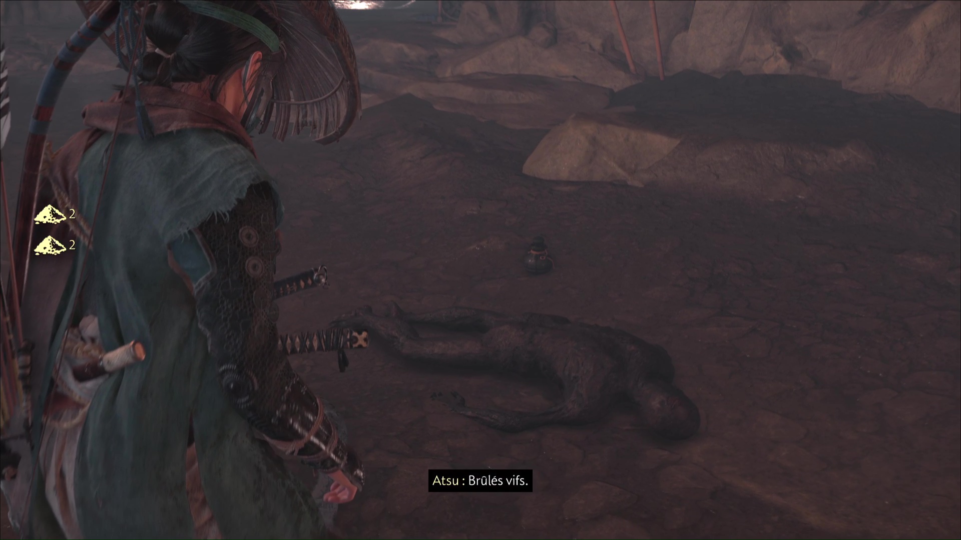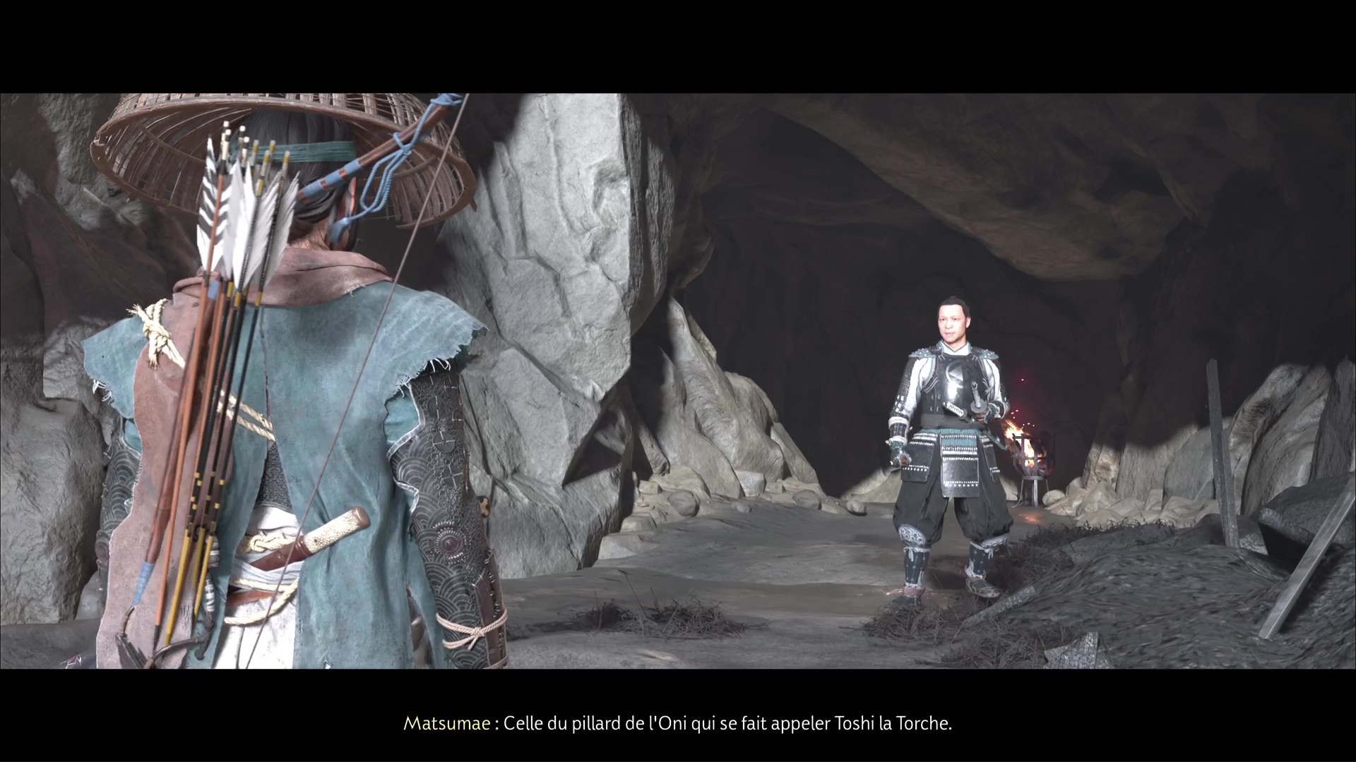 Il doit capturer vivant Toshi mais estime qu’il mérite la mort étant donné qu’il a brûlé les siens. À vous de vous charger de la prime. Constatez les dégâts causés sur les Matsumae à mesure que vous progressez dans la grotte.