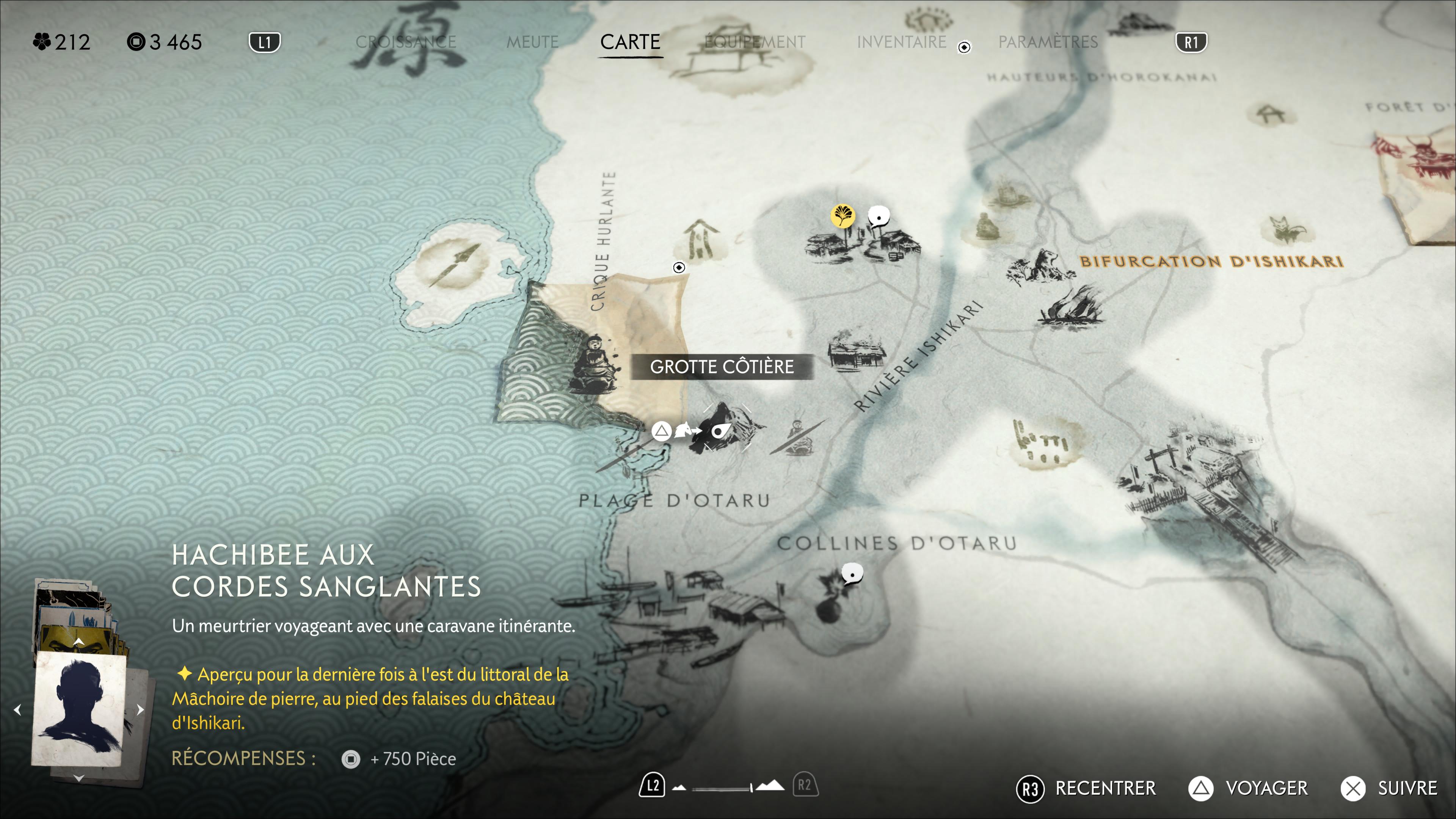 Au sud-ouest des Plaines d’Ishikari se trouve la Plage d’Otaru. Sur cette plage, vous trouverez la Grotte Côtière. Approchez de l’entrée pour tomber sur un Matsumae.