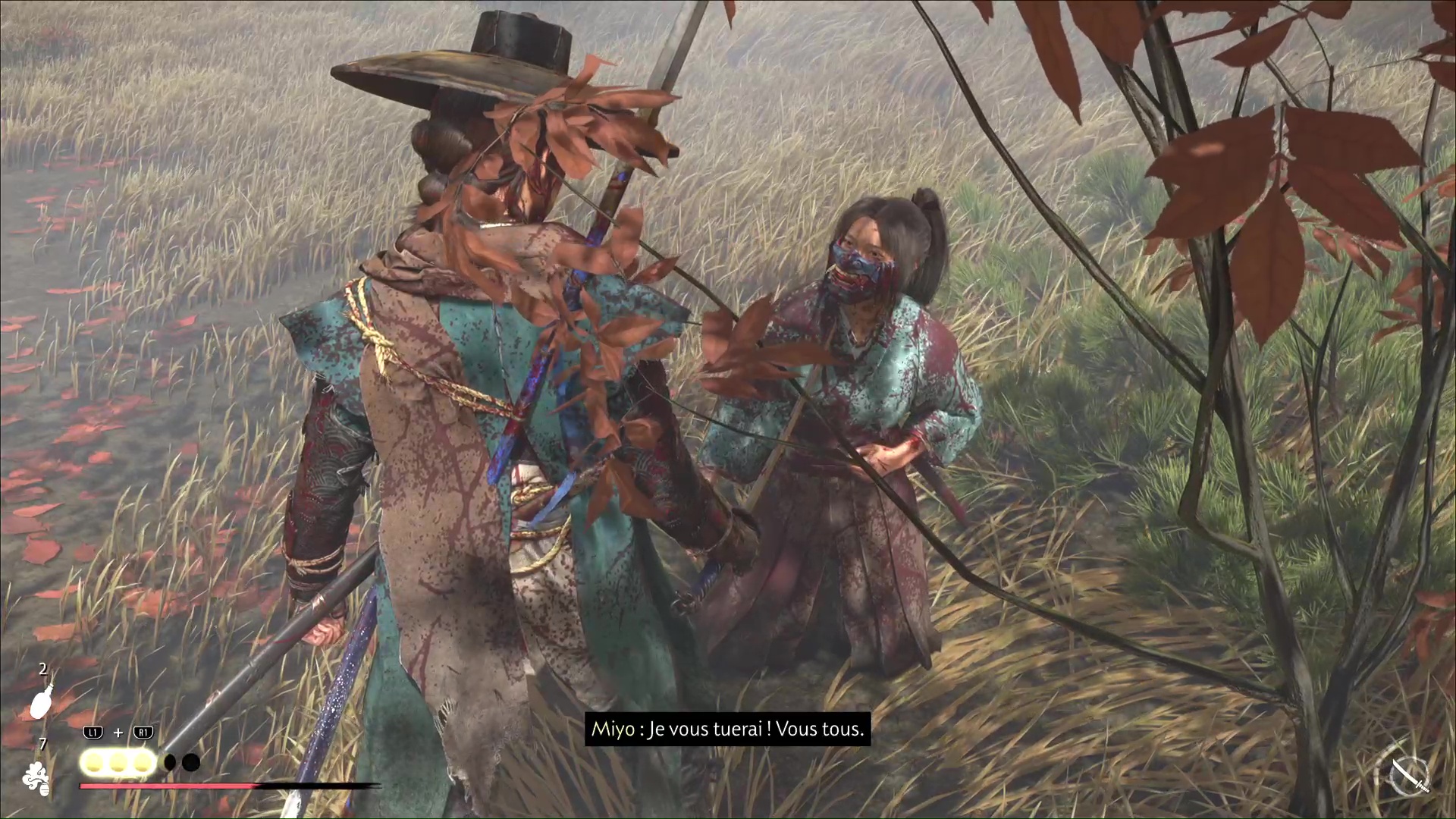 Au moment où sa barre de vie atteint zéro, Atsu laissera Miyo dire ses dernière paroles, avant de s’effondrer. Vous n’aurez plus qu’à ramasser le Masque de la Yamauba bleue sur son cadavre, sans oublier la prime de 1 500 pièces à récupérer au tableau des primes.