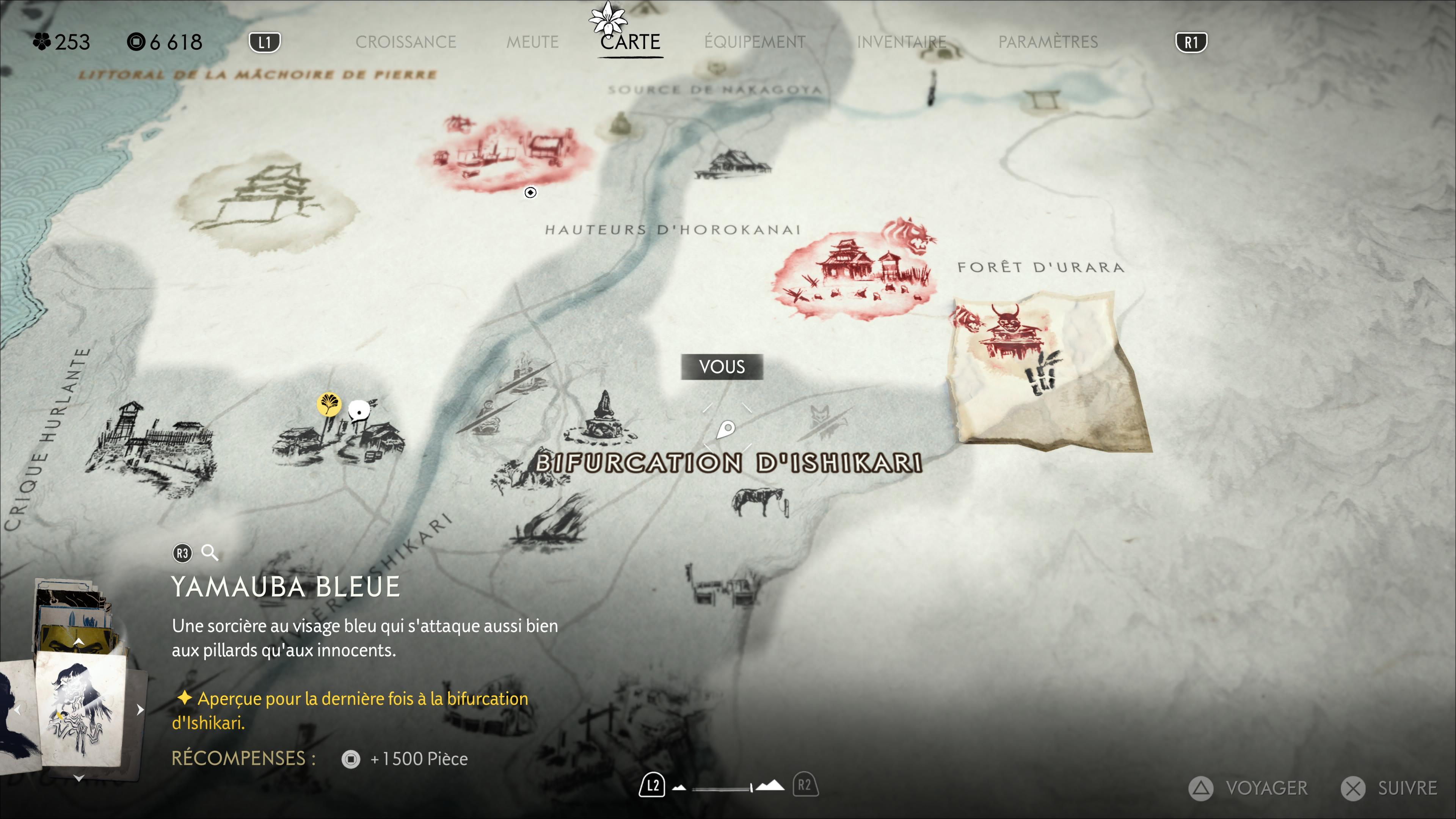 S’aventurer sur Plaines d’Ishikari, c’est s’aventurer sur les terres de l’Oni. Une montagne, ou plutôt un château, attend Atsu dans cette région de Ghost of Yōtei, mais pas que. Quelques primes sont à mener pour notre héroïne, avec à la clé de l’argent et quelques récompenses cosmétiques. Nous vous indiquons ici l’identité et l’emplacement de chacune de ces cibles.