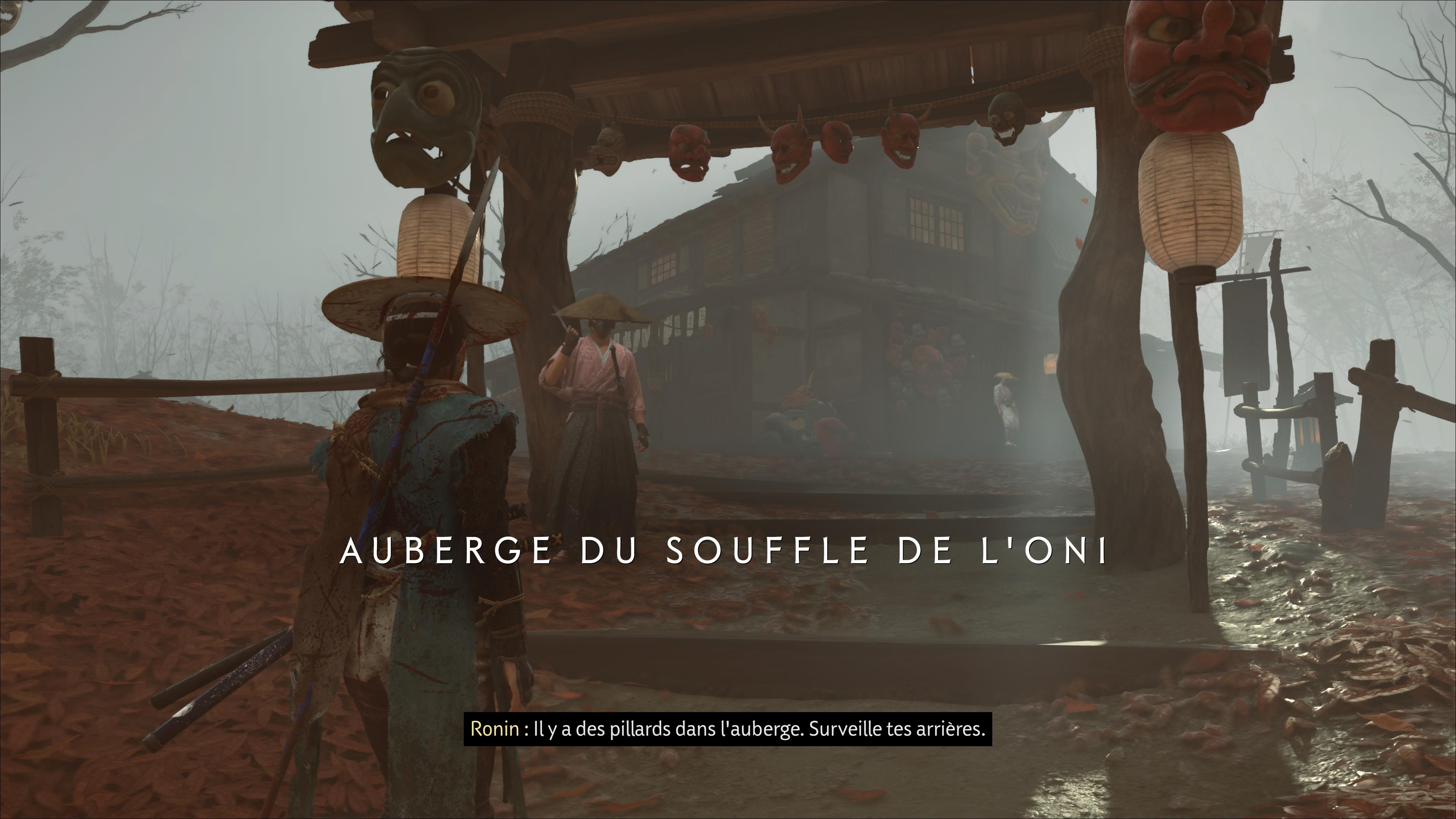 Cette auberge se situe grosso modo à l’est de votre position. Arrivé sur place, cherchez donc Sabura, le fabricant de masques. Parlez-lui de la Yamauba bleue en lui montrant le dessin que vous a fait l’habitant, et il reconnaîtra le masque. Une femme nommée Miyo l’a acheté, et elle vivrait dans la forêt au nord-est de votre position.