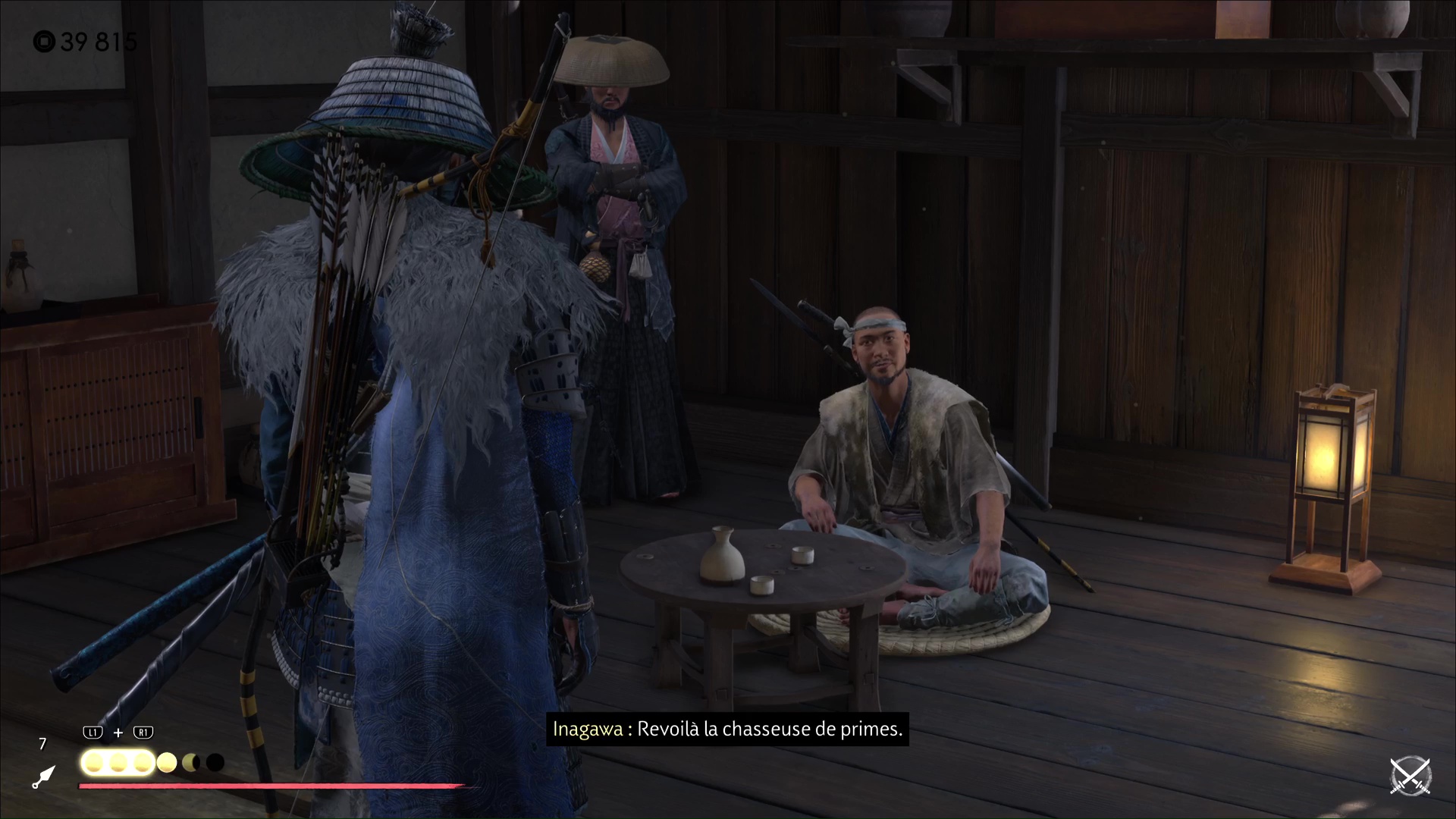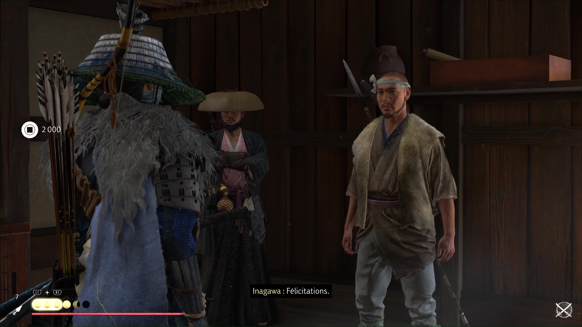 Foncez enfin vers un nouveau feu, où se trouve Katagiri. Tuez d’éventuels gardes restants puis achevez votre cible. Pensez ensuite à aller réclamer votre récompense de 2 000 pièces.