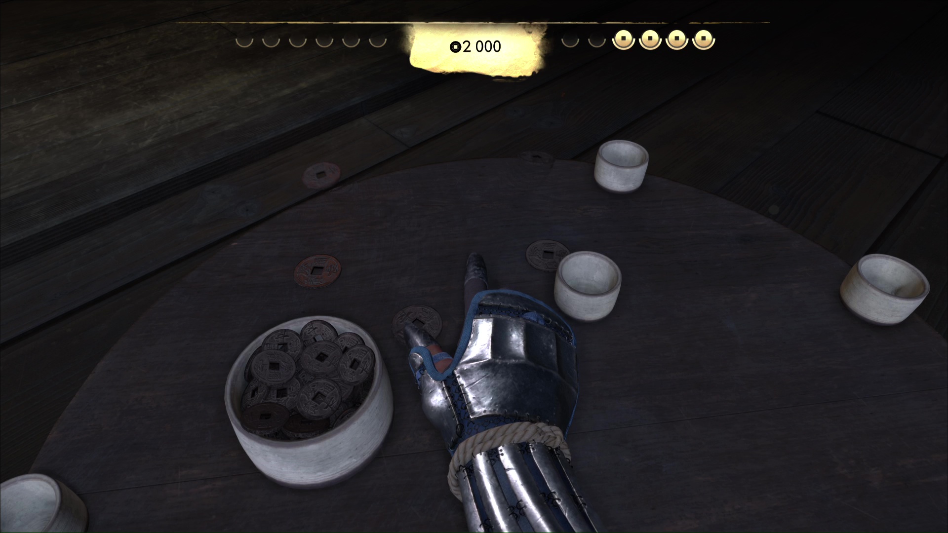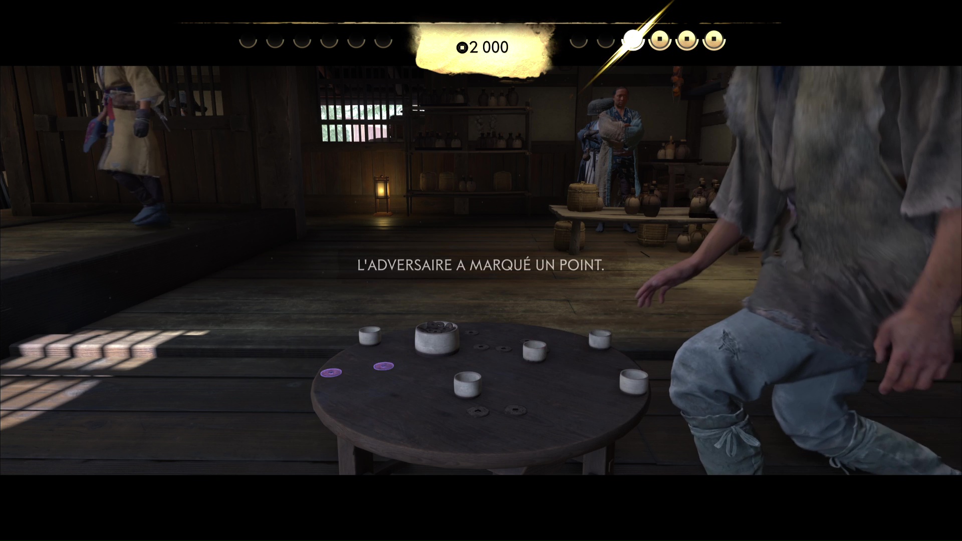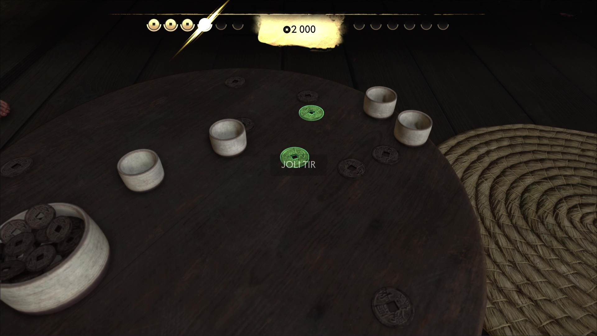 Alors que vous partez pour quitter les lieux, un habitant vous interpelle. Il vous invite à aller dehors. Suivez-le et il vous expliquera alors que Inagawa utilise des pièces pipées. Il vous suggère alors de voler ces pièces qui sont entreposées dans un coffre à l’étage.