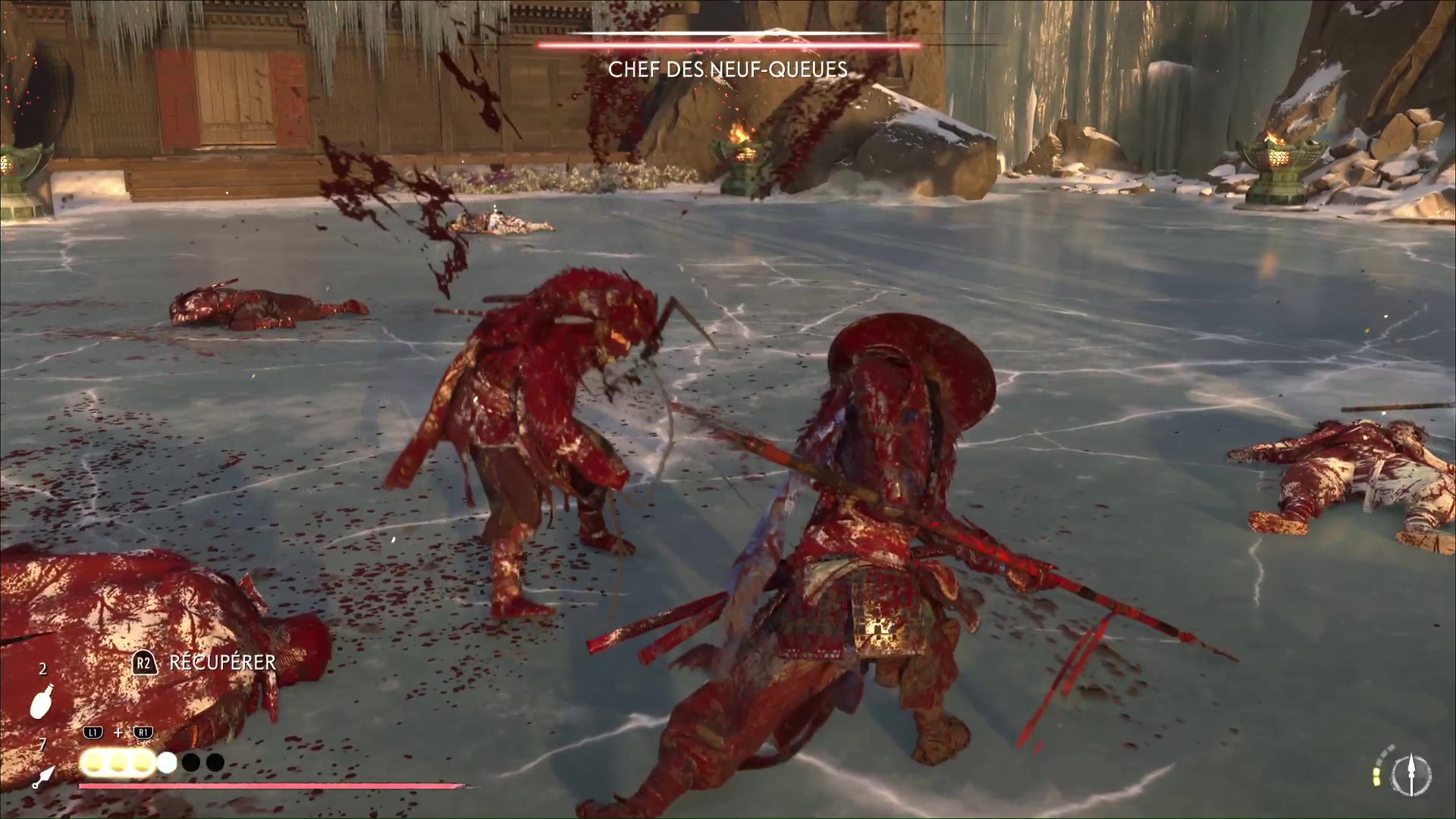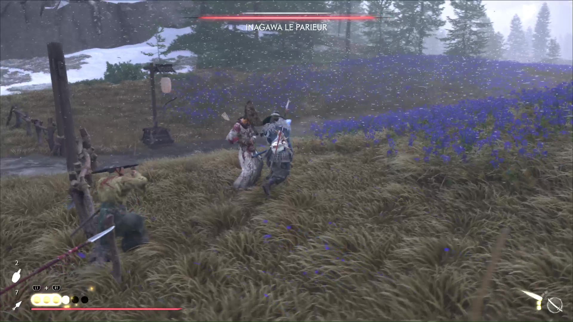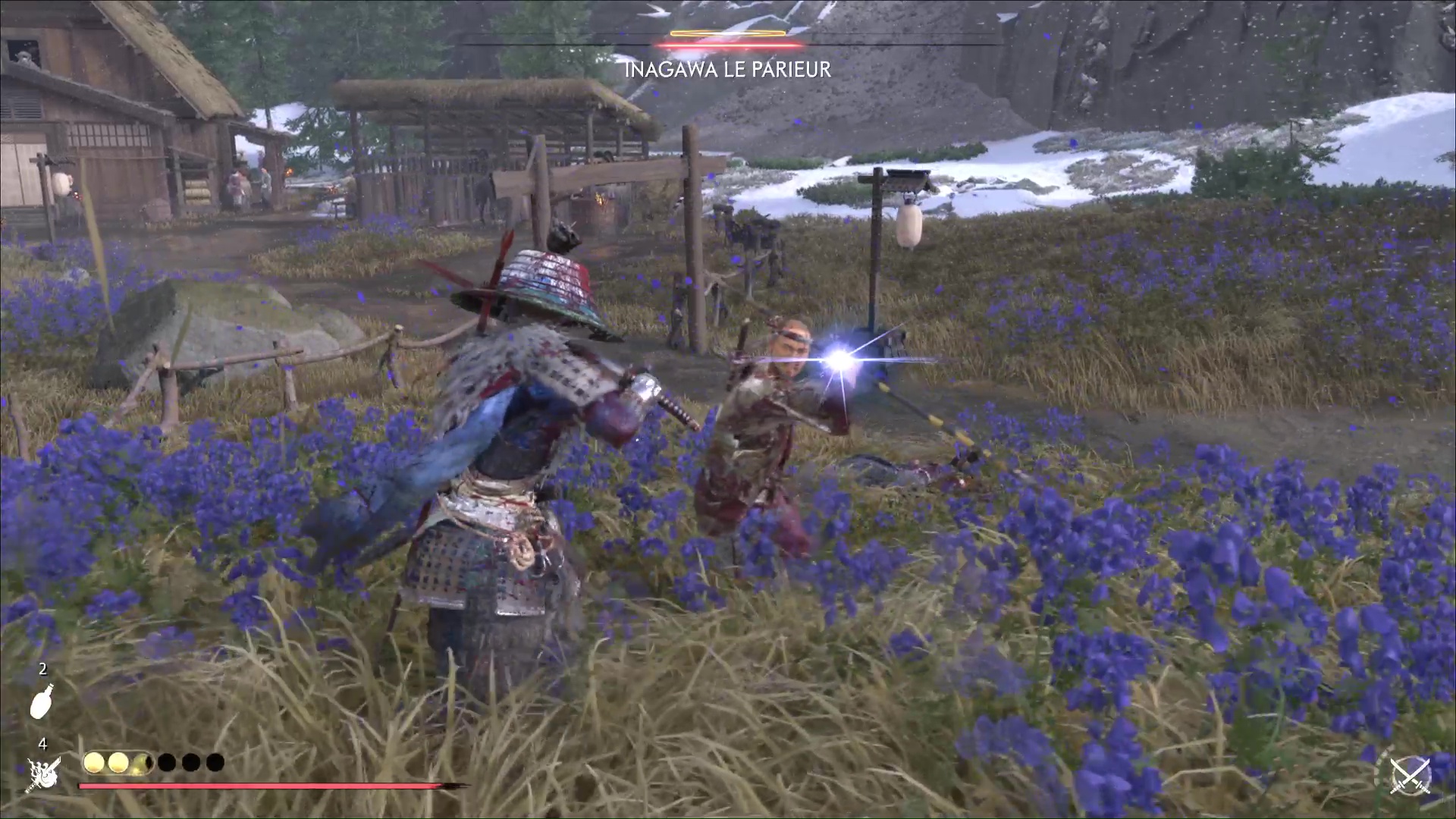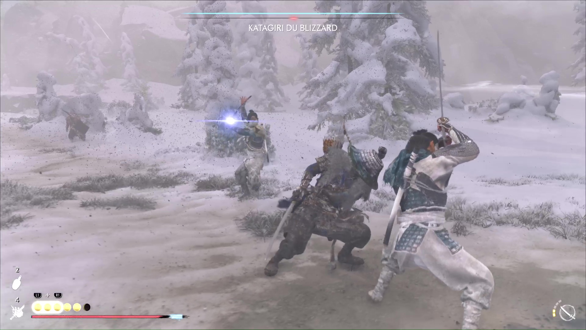 Tuez les archers qui vous embêteront et soyez prêt à affronter le kusarigama de Katagiri. La particularité de ce combat est que le blizzard souffle et que le maximum de votre barre de vie descend progressivement. À un moment durant le combat, Katagiri lâchera une bombe fumigène et s’enfuira.