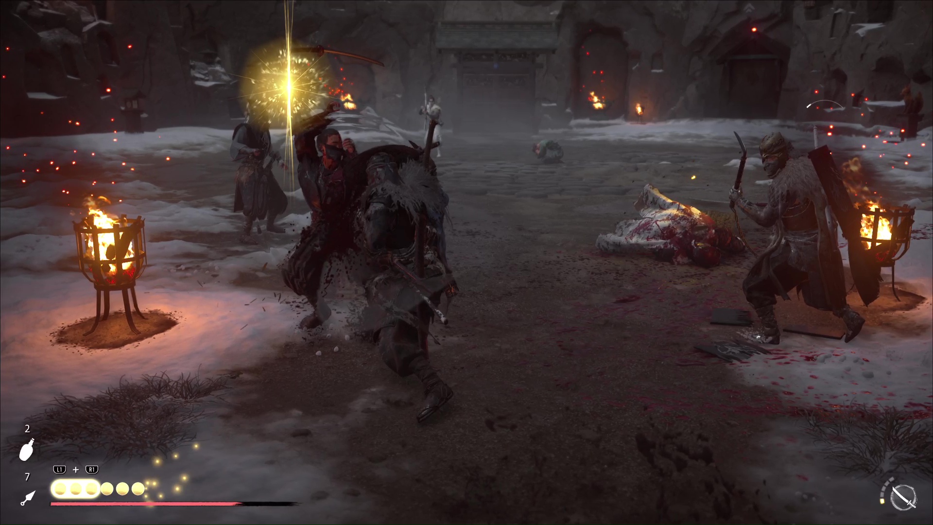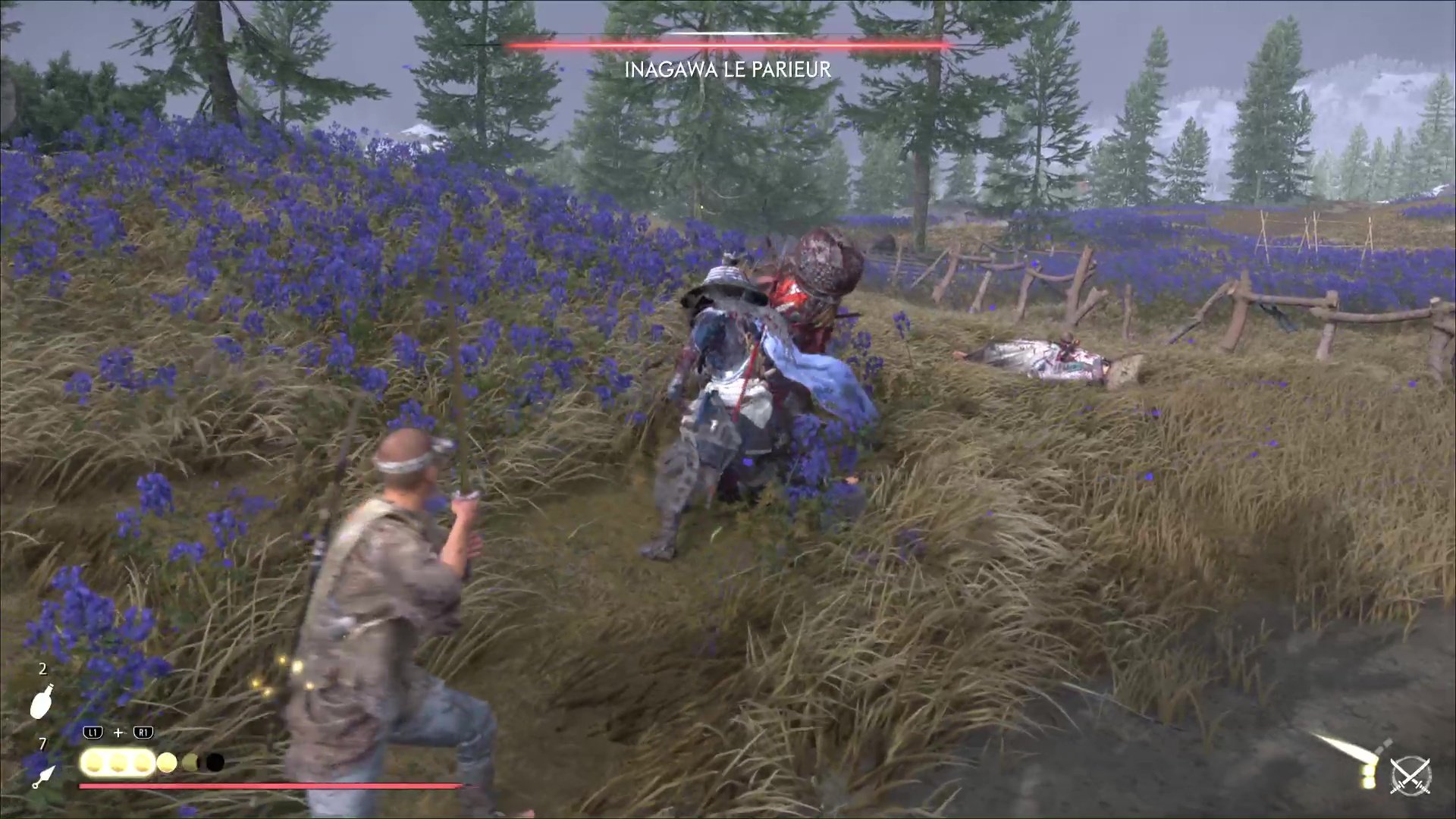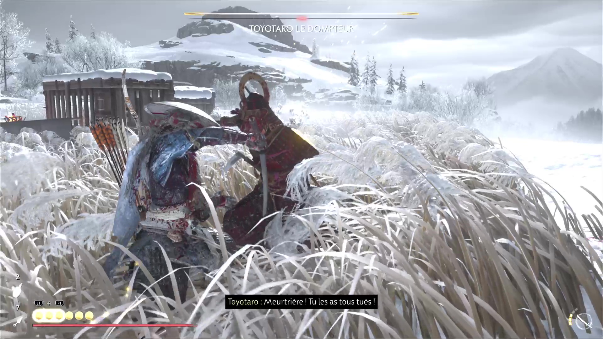 Arrivé au camp, il est possible de tenter une approche discrète, ou tout du moins une attaque surprise, depuis les herbes hautes. Une fois le combat lancé, cinq chiens accompagnent Toyotaro et ils doivent être tués en priorité. Votre cible se bat au katana et ne proposera pas spécialement une forte résistance, même s’il lui arrivera d’essayer de vous désarmer.