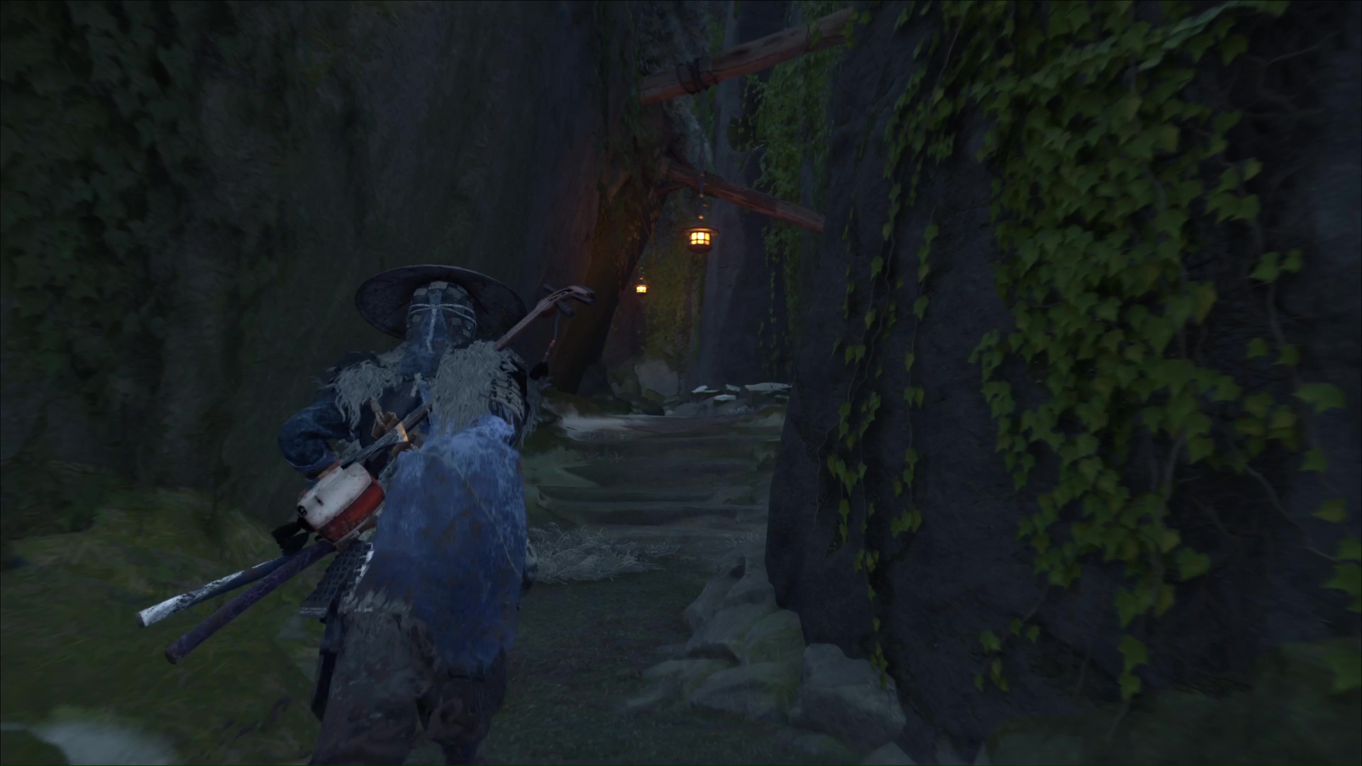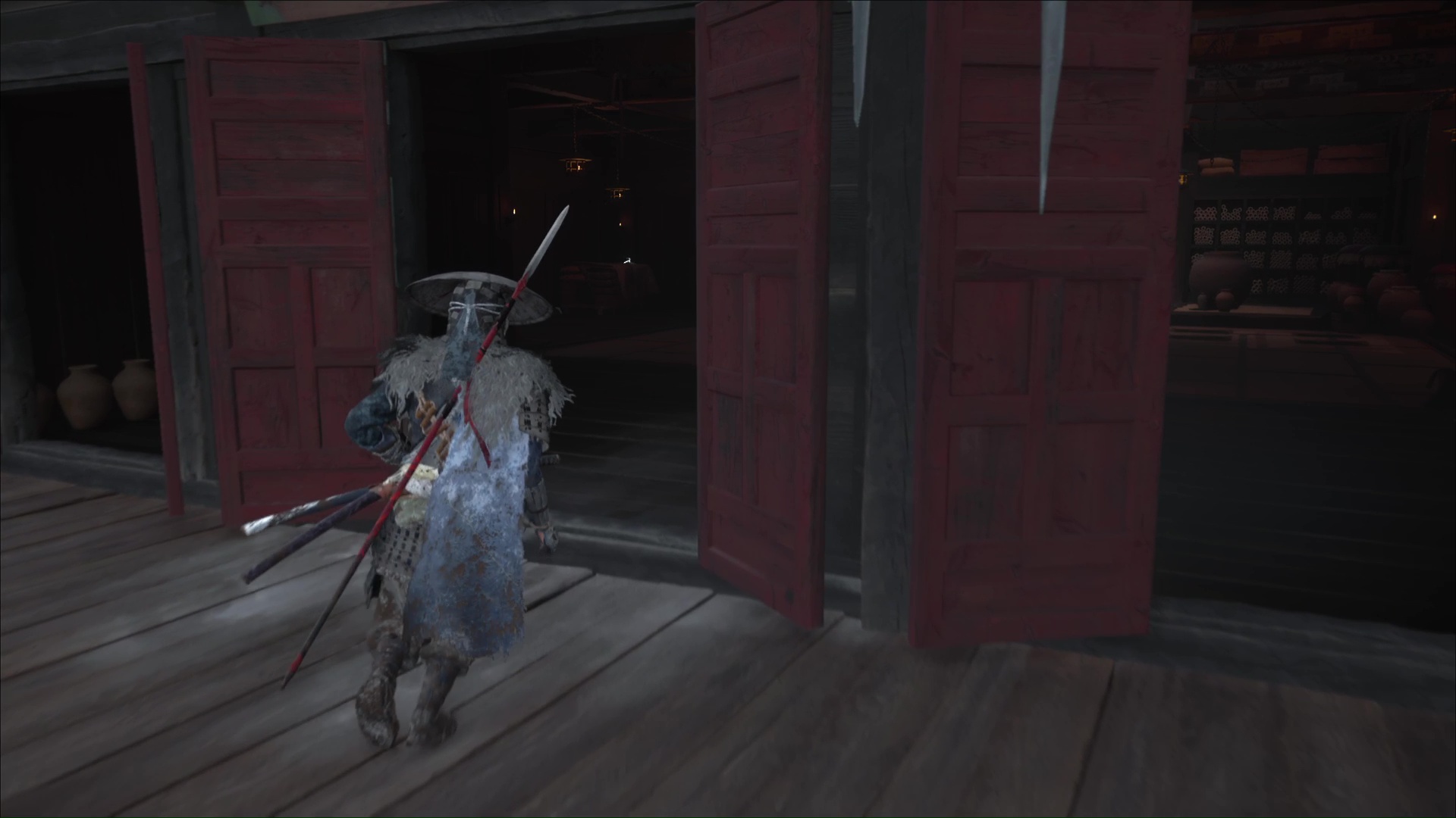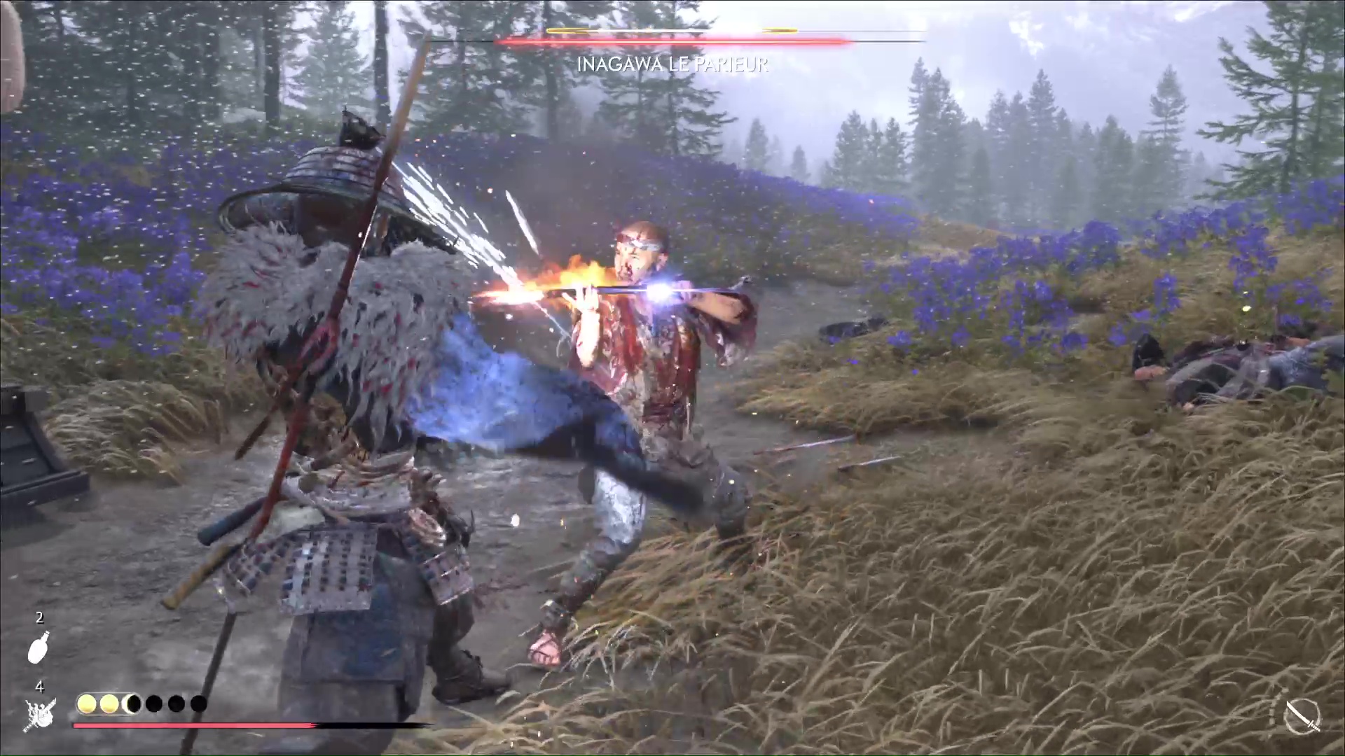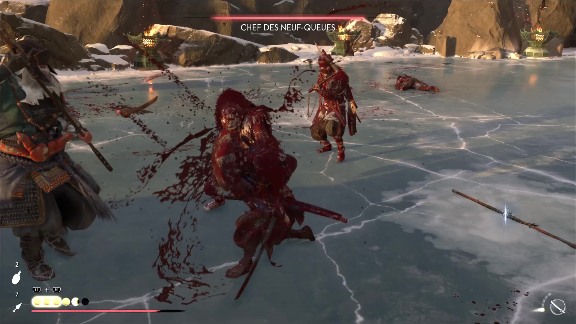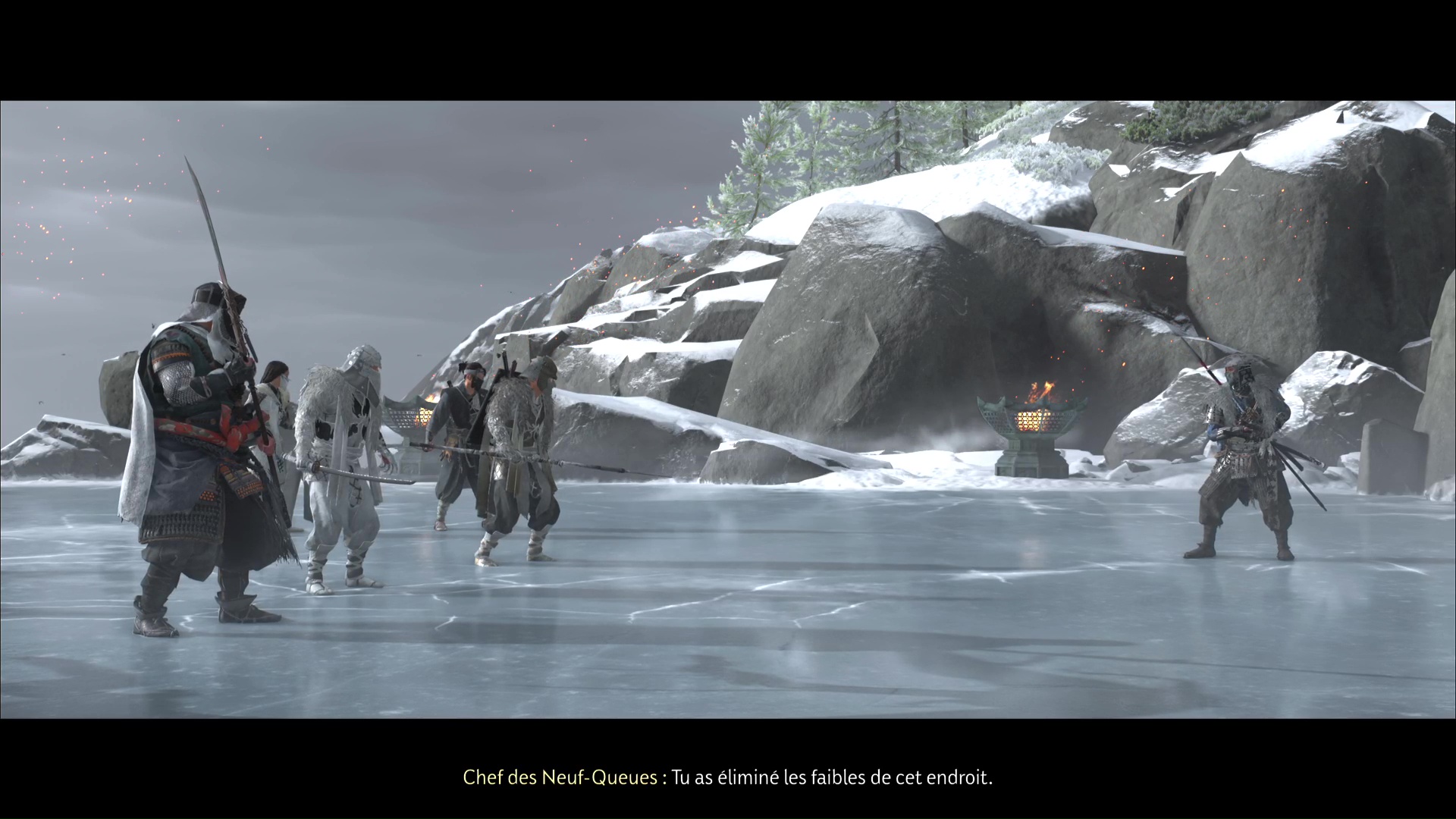 Dans cette configuration, utiliser votre lance est préférable, si vous l’avez. Et si jamais c’est lui qui utilise sa lance, switchez alors sur le double katana. Une fois celui-ci à terre, vous récupérerez son sabre Mort sans nom. Vous n’aurez plus qu’à récupérer la prime de 2 000 pièces, après avoir rejoint l’autel de réflexion et une Boîte complexe un peu plus loin.