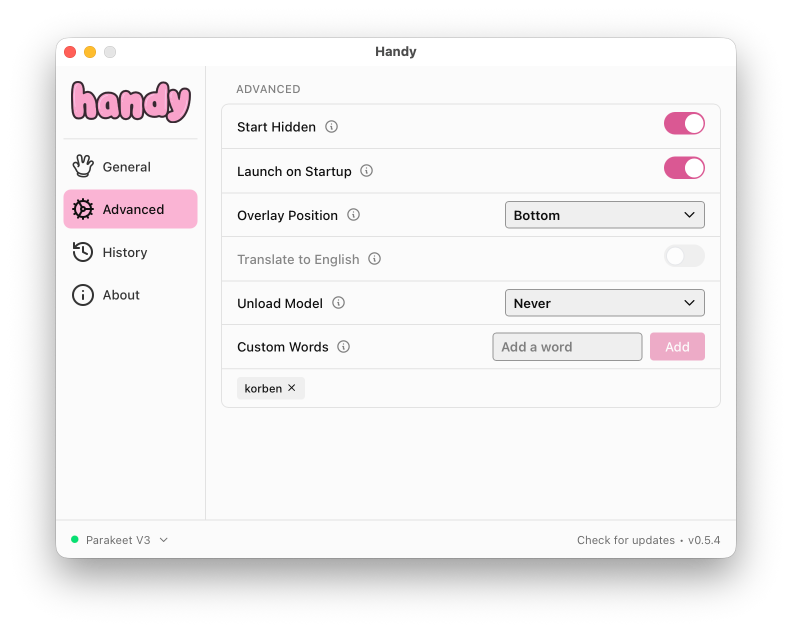 Ce truc est génial aussi bien pour l’accessibilité que pour la reconnaissance vocale en elle-même qui est plutôt utile dans la vie de tous les jours. D’ailleurs, il y a plusieurs modèles IA disponibles, comme tous les modèles Whisper, mais aussi un modèle que je ne connaissais pas, qui s’appelle Parakeet et qui franchement fonctionne très bien. C’est celui que j’utilise actuellement.