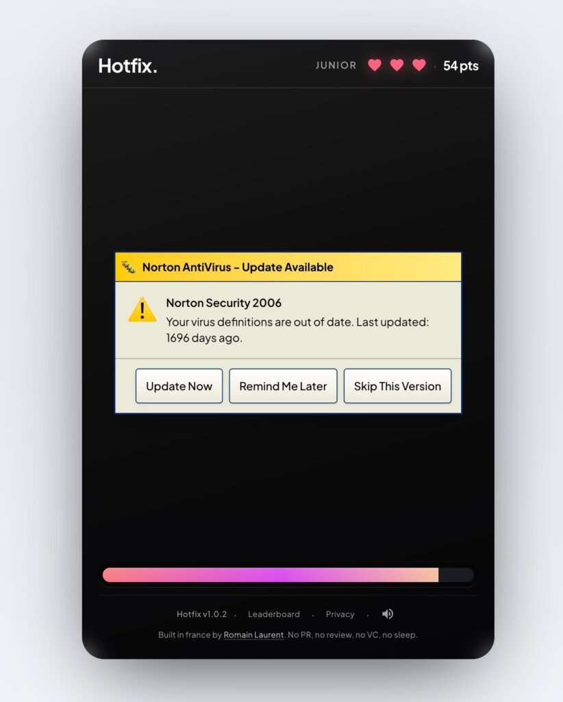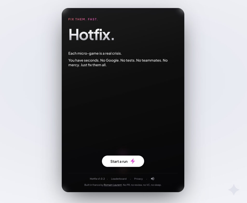 En tout cas, Hotfix parle à une catégorie très précise de techos… Ça parle à ceux qui ont déjà reçu un ping PagerDuty pendant un apéro, à ceux qui ont tapé git push --force sur leur prod à 2h du matin ou encore à ceux qui ont commit “fix” sans savoir précisément ce qu’ils avaient fixé. Les autres joueront aussi, mais ils ne riront pas nerveusement de la même manière.