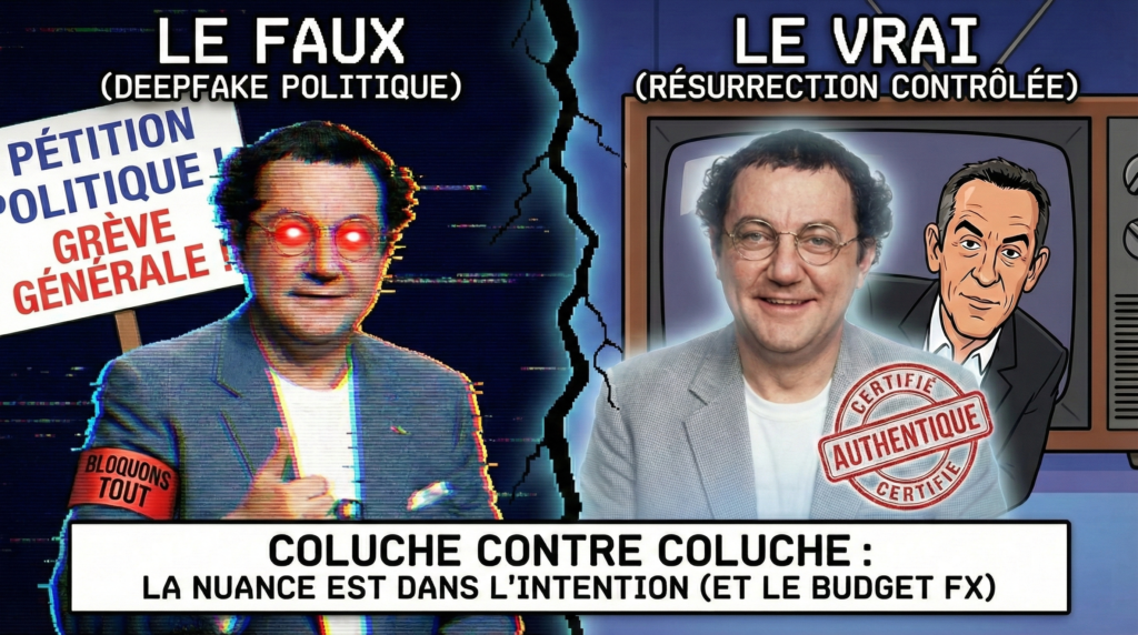 où Thierry Ardisson “ressuscitait” Coluche, mais en utilisant uniquement ses propos authentiques. La nuance est importante, et ça montre bien que tout dépend de l’intention.