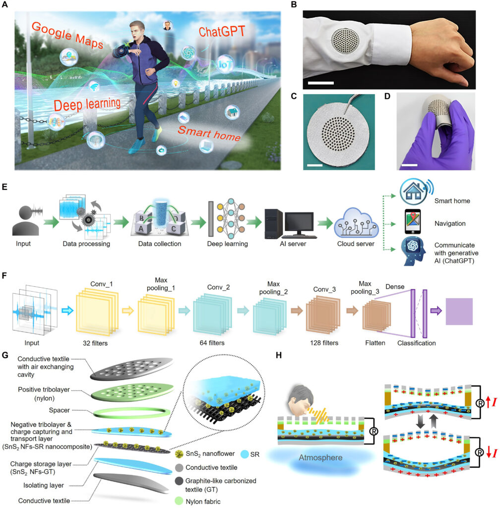 Et le résultat de leurs recherches, c’est la mise au point d’un tissu intelligent baptisé A-Textile qui transforme votre voix en commandes pour l’IA. Pas de microphone, pas de batterie mais juste du tissu et de l’électricité statique !