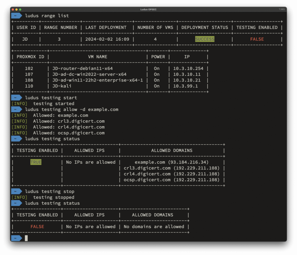 , c’est donc un système d’automatisation open-source qui tourne sur Proxmox. Vous définissez votre environnement de test (ce qu’ils appellent un “range”) dans un fichier de config, et Ludus s’occupe de tout déployer. Active Directory, machines Windows avec Office et Chocolatey, réseaux isolés, firewall rules personnalisées, DNS interne… Tout ce qu’il faut pour un lab de red team, blue team ou purple team.