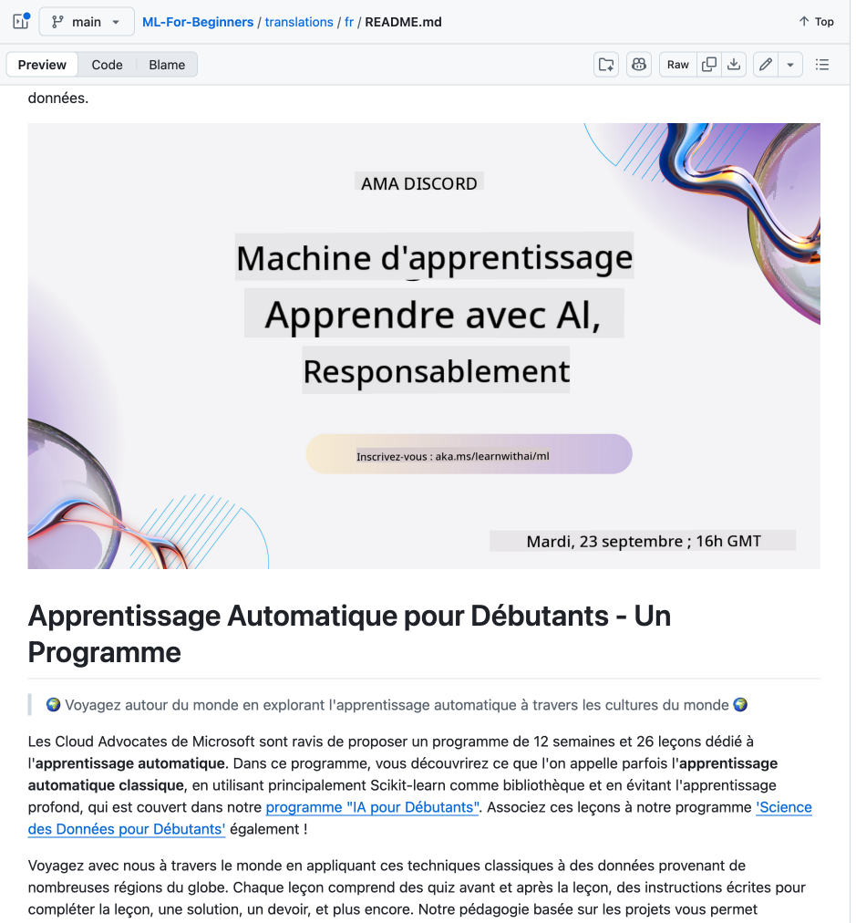 est dispo sur le repo et tout est traduit dans plus de 50 langues, du chinois à l’arabe en passant par le croate… Microsoft a automatisé la traduction via GitHub Actions, donc soyez souple d’esprit si vous croisez quelques phôtes…
