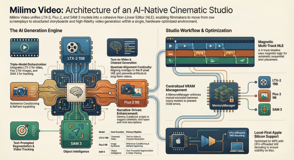 MilimoVideo, c’est un studio de production vidéo boosté à l’IA qui tourne entièrement en local sur votre ordi… pas de cloud, juste votre GPU qui mouline quoi…