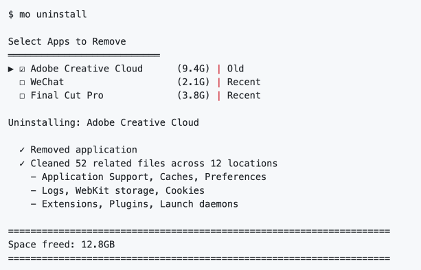 mo uninstall --force-rescan # Rescan apps and refresh cache